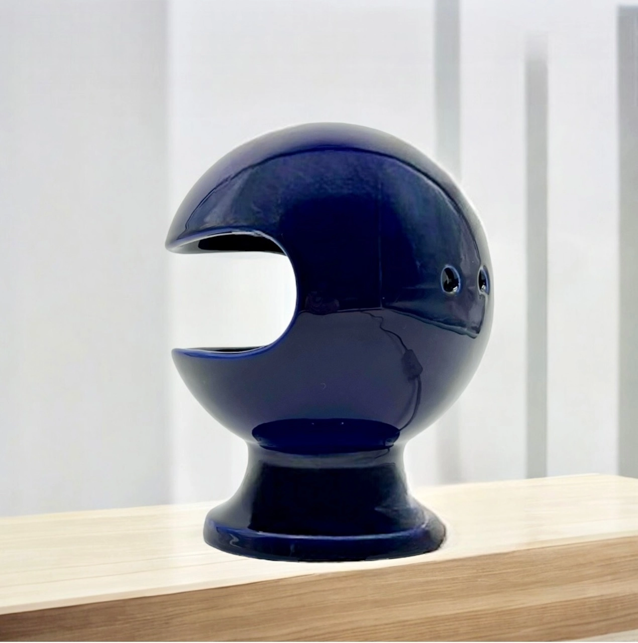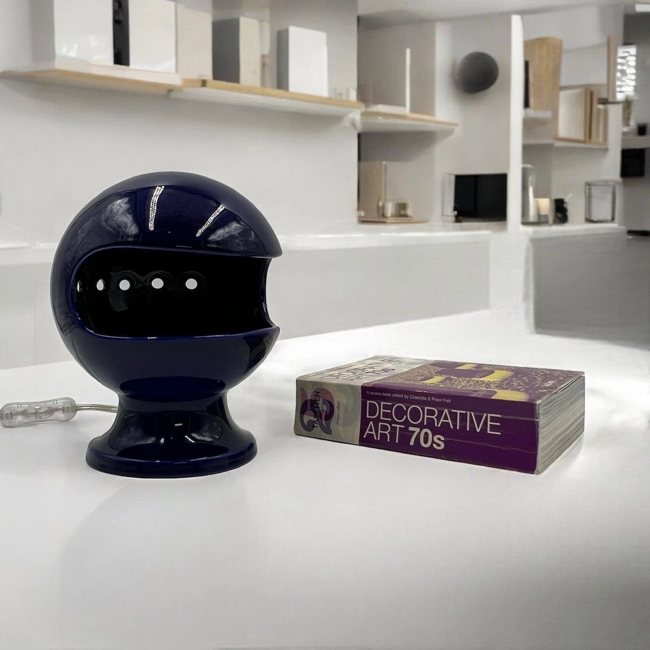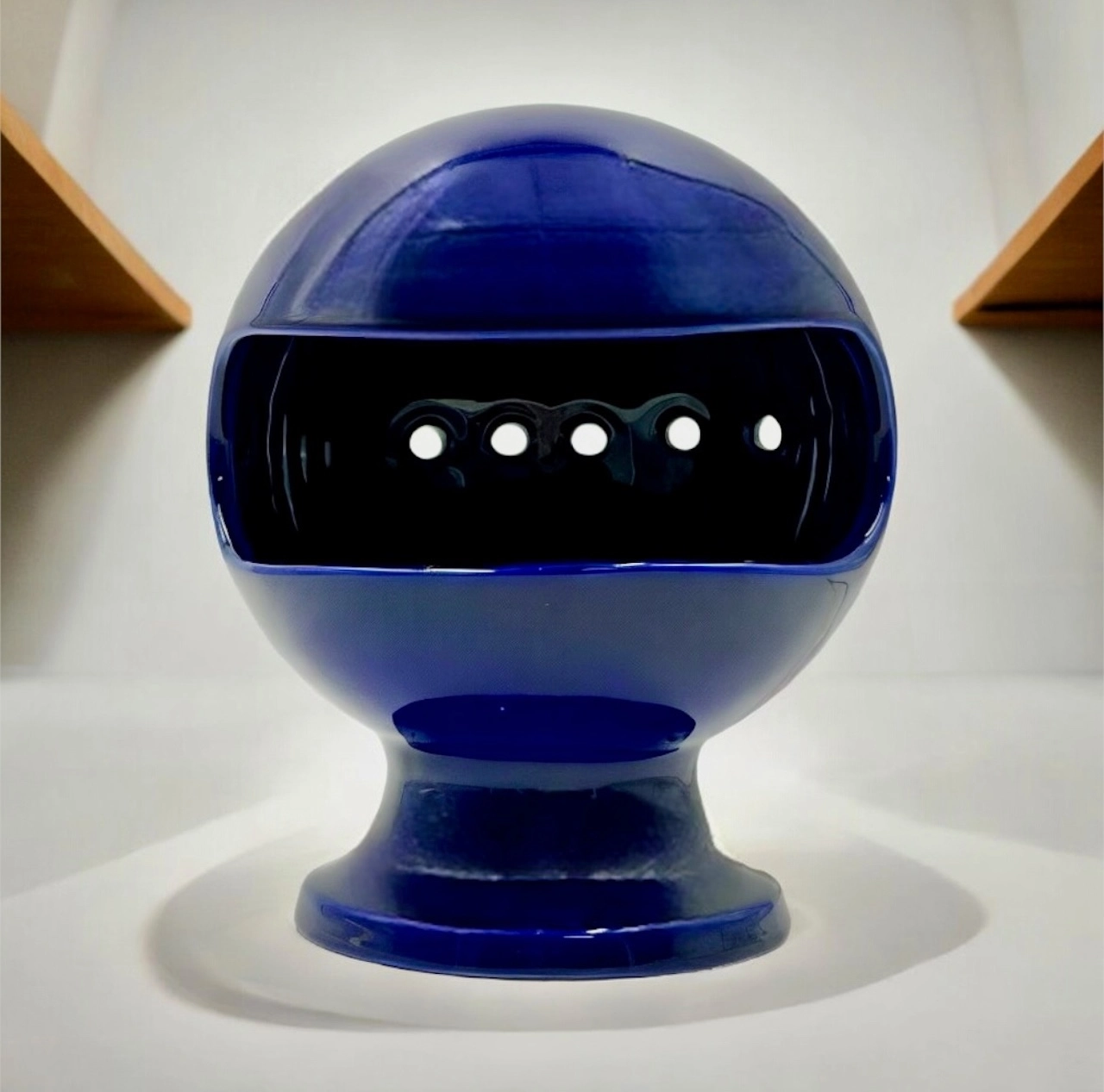 This particular lamp exemplifies the exquisite craftsmanship of the era. Made from blue glazed ceramic, this piece hails from the 1960s and carries the signature “Il Picchio Italy” at its base. The avantgarde shape reminiscent of timeless creations like Flos Jucker from Afra and Tobia Scarpa is adds distinctiveness and space age flair. The unibody ceramic construction found also on iconic pieces like Marcello Cuneo Longobarda is another signature of the bold design from the era.
