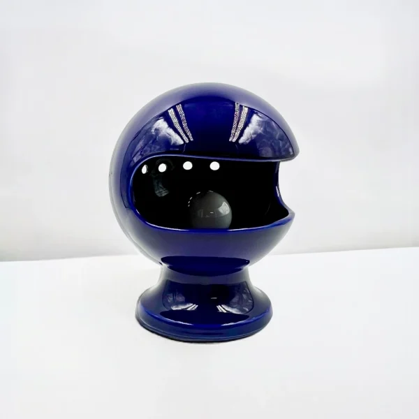 Enzo Biolis 1960s lamps are more than just lighting fixtures; they are pieces of artistic crafstmanship that bring a touch of mid-century sophistication to any decor. The vibrant blue glaze, coupled with the lamps space age form, makes it a desirable piece for collectors and interior enthusiasts. A rare find that adds a unique touch of vintage Italian design to your space.