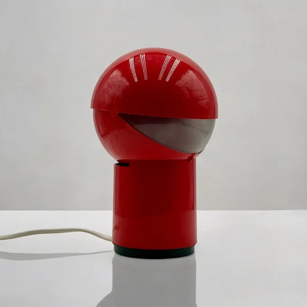 The lampshade can be moved to adjust light intensity, likewise the famous Eclisse. This specimen comes with a vibrant red color, that will give an unmistakeable 70s flair to your vintage inspired setting.