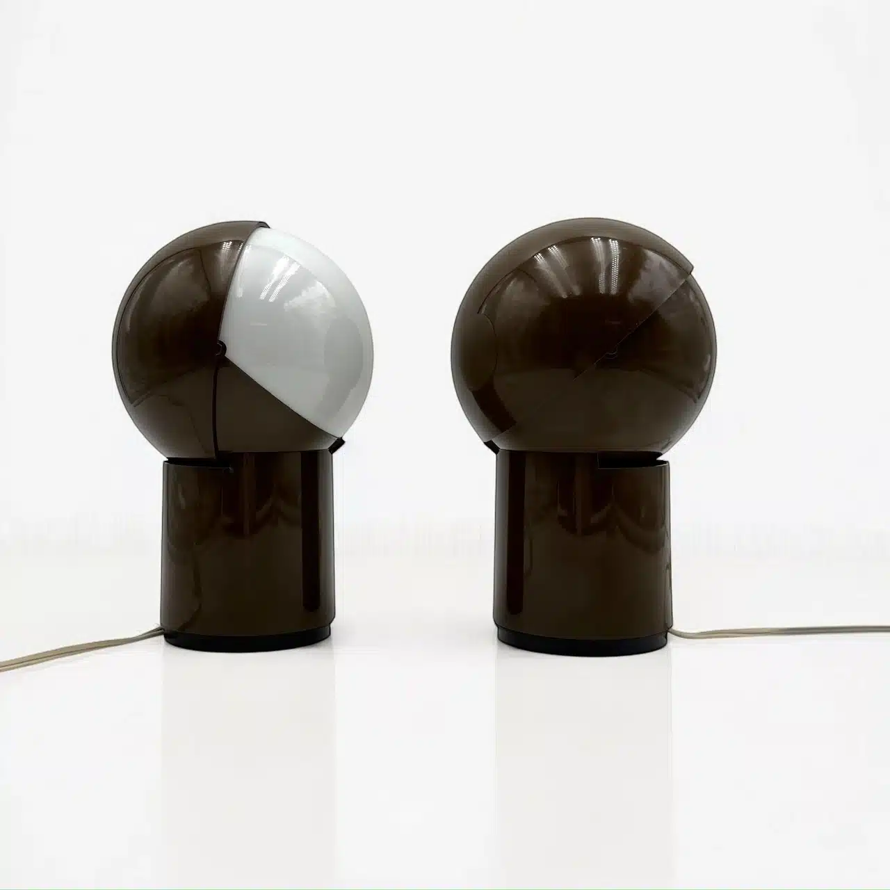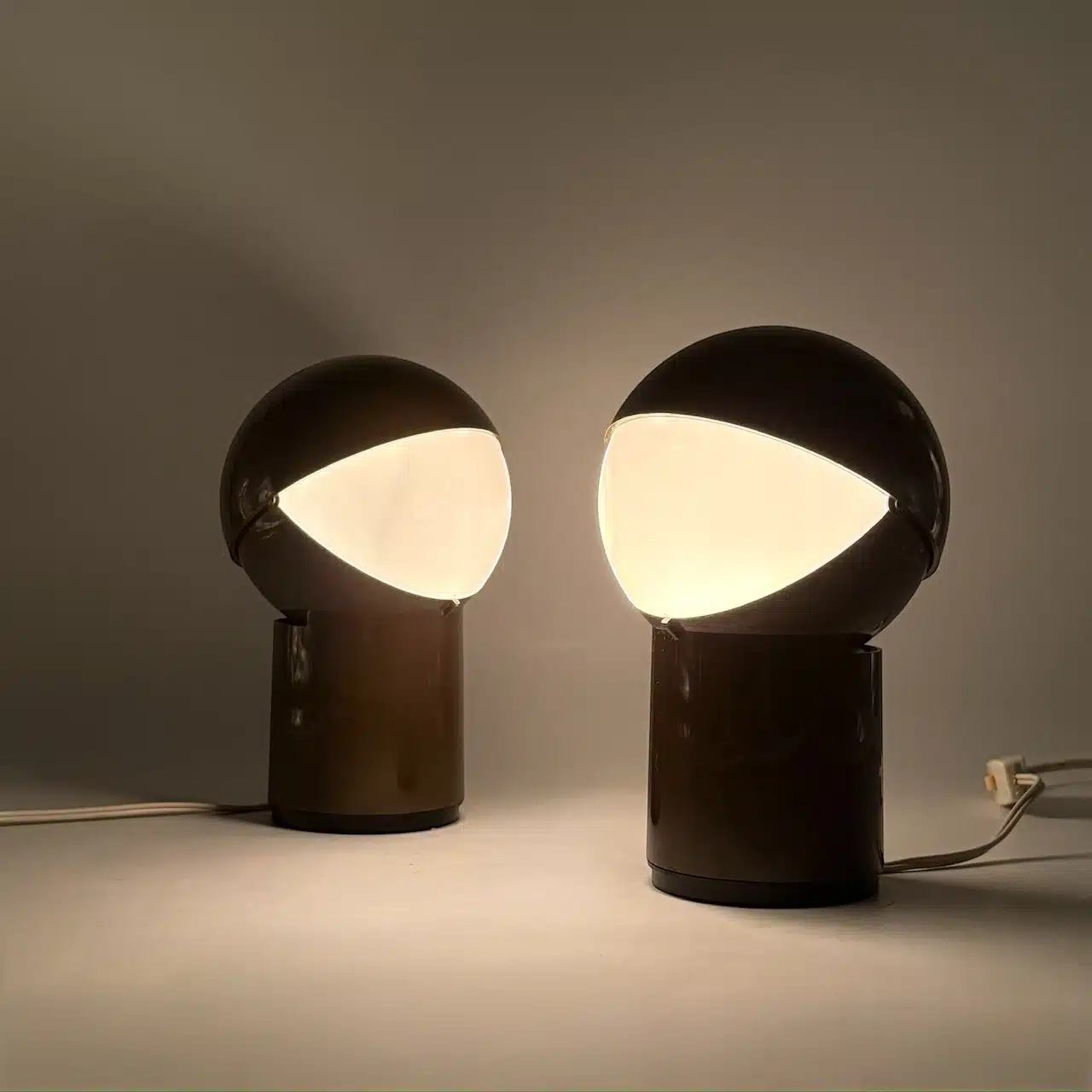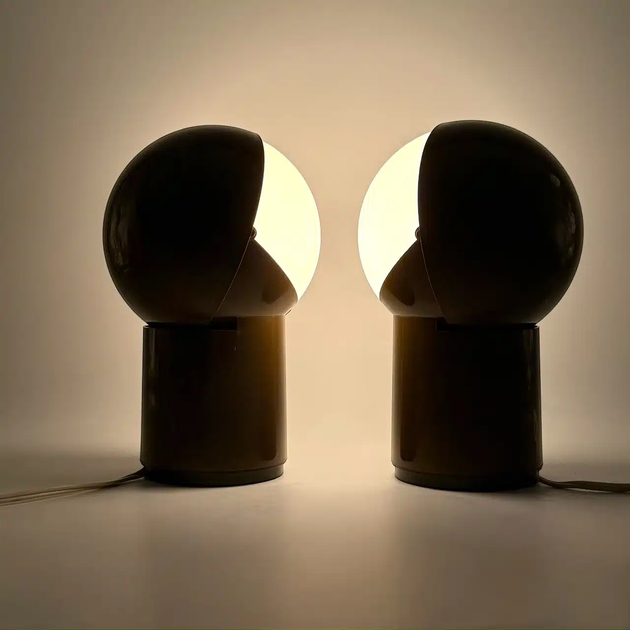 Each lamp features an adjustable rotating shade, allowing you to direct and modulate the light to suit any ambiance—similar to the renowned ‘Eclisse’ lamp. Whether you need focused illumination or a softer, diffused glow, these lamps offer versatile lighting options ideal for any vintage or Space Age-inspired setting.