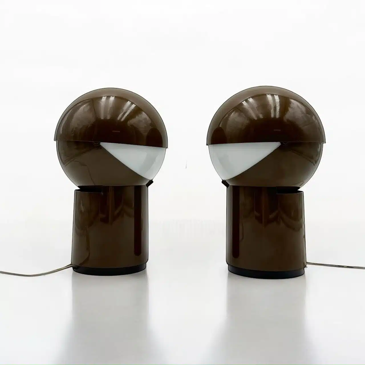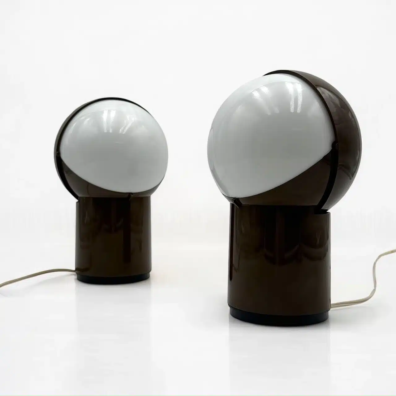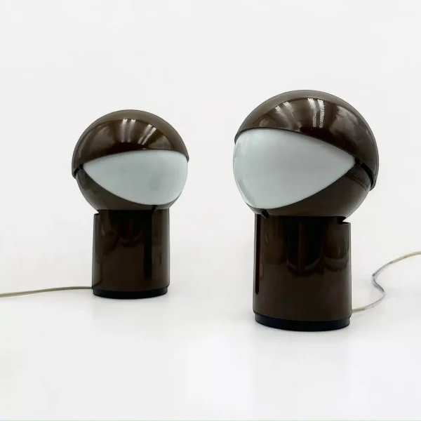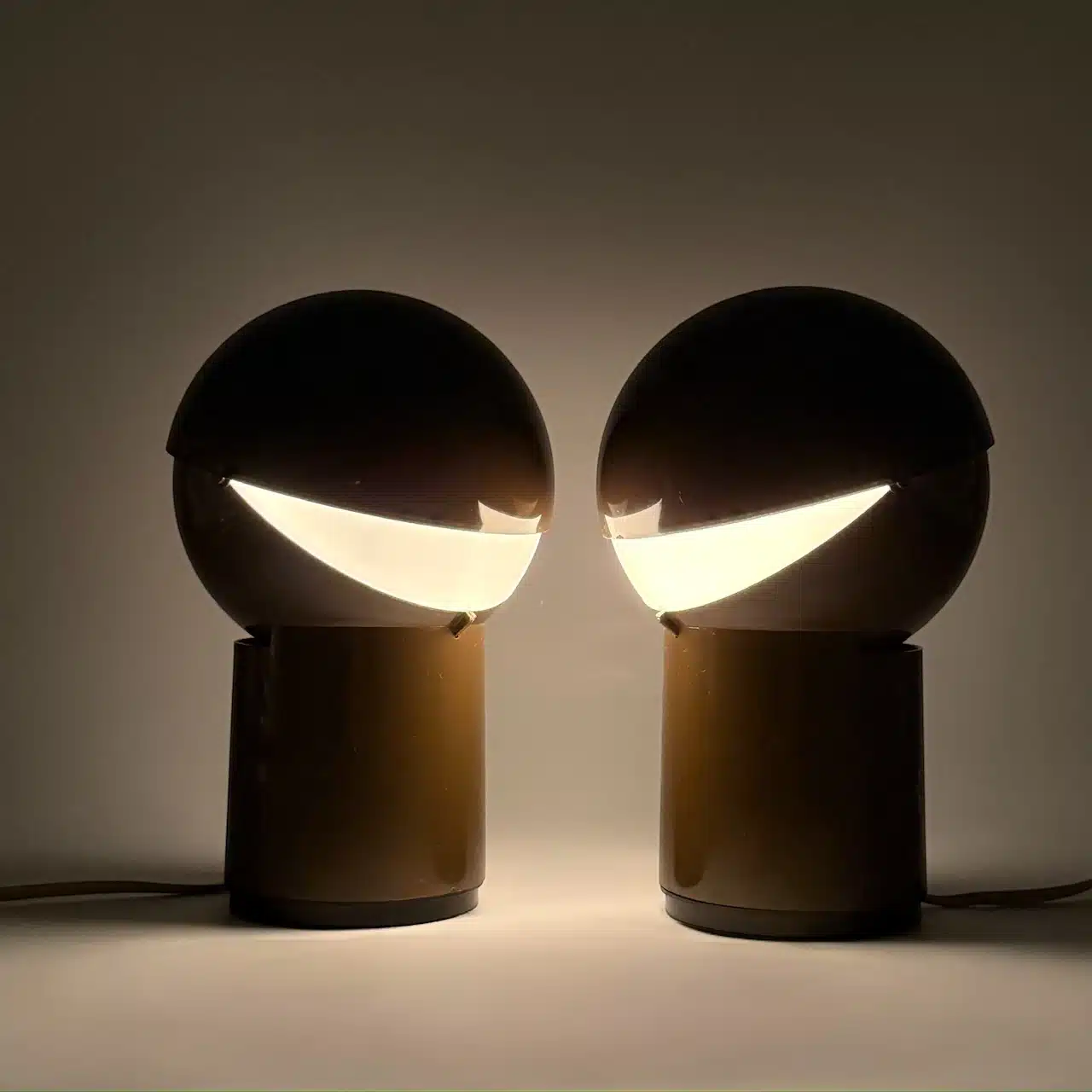 Each lamp features an adjustable rotating shade, allowing you to direct and modulate the light to suit any ambiance—similar to the renowned ‘Eclisse’ lamp. Whether you need focused illumination or a softer, diffused glow, these lamps offer versatile lighting options ideal for any vintage or Space Age-inspired setting.