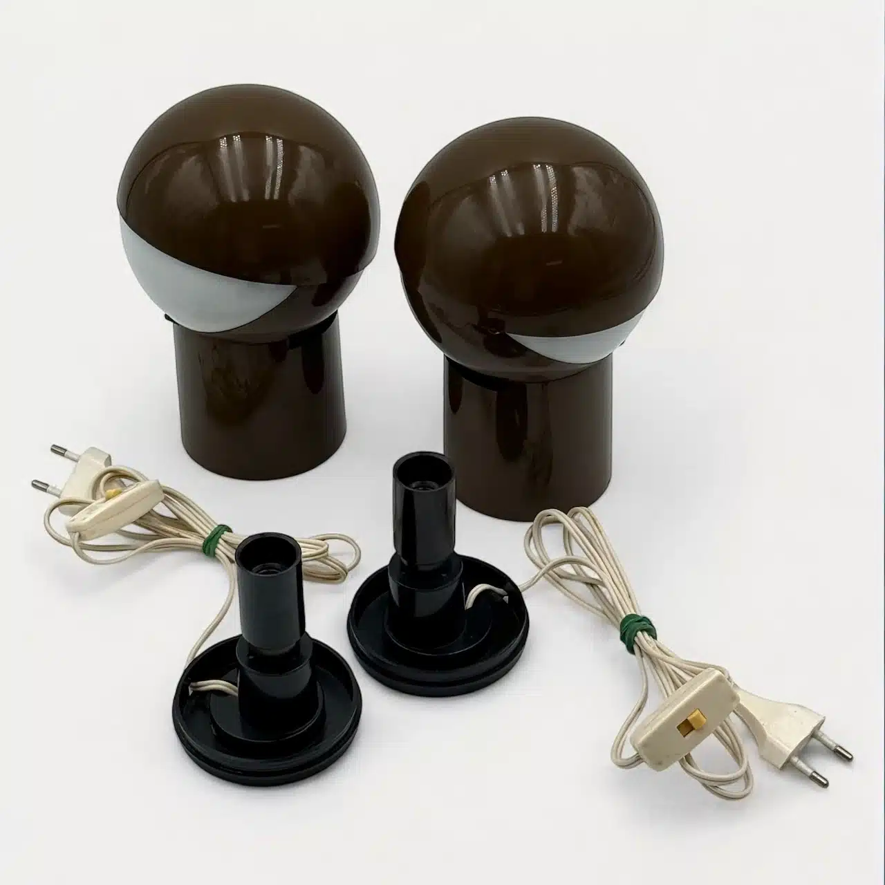 Amazing pair of 70s Space Age lamps by Gagiplast, Italy. The ‘Sfera Notte’ design features adjustable light and chocolate brown hue, perfect to give a retro futuristic touch to your interiors.