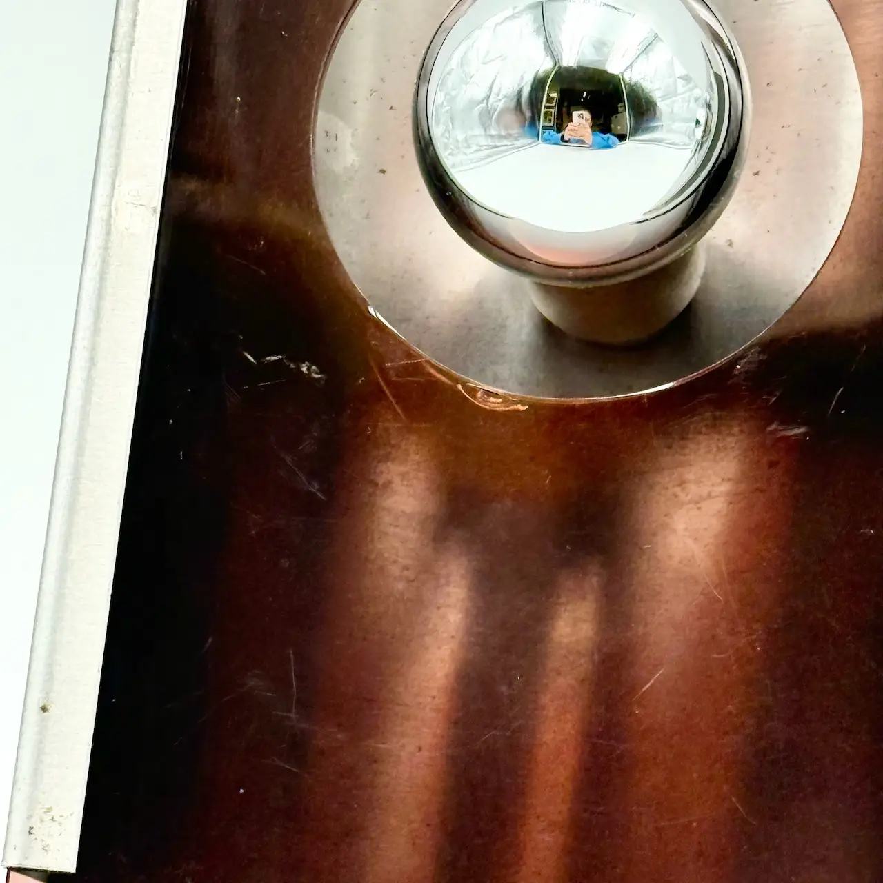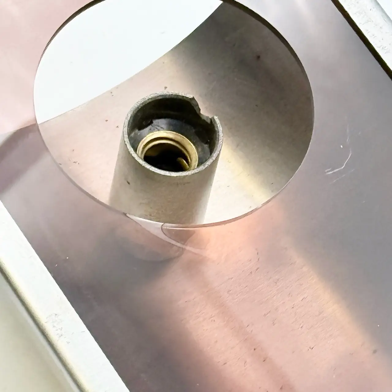 Each wall lamp features a solid metal front support paired with smoked plexiglass panels that filter and soften the light. When illuminated, the layered construction generates a striking visual effect, projecting warm reflections and sculptural shadows across the wall. The result is a dynamic composition that changes with perspective and ambient light conditions.