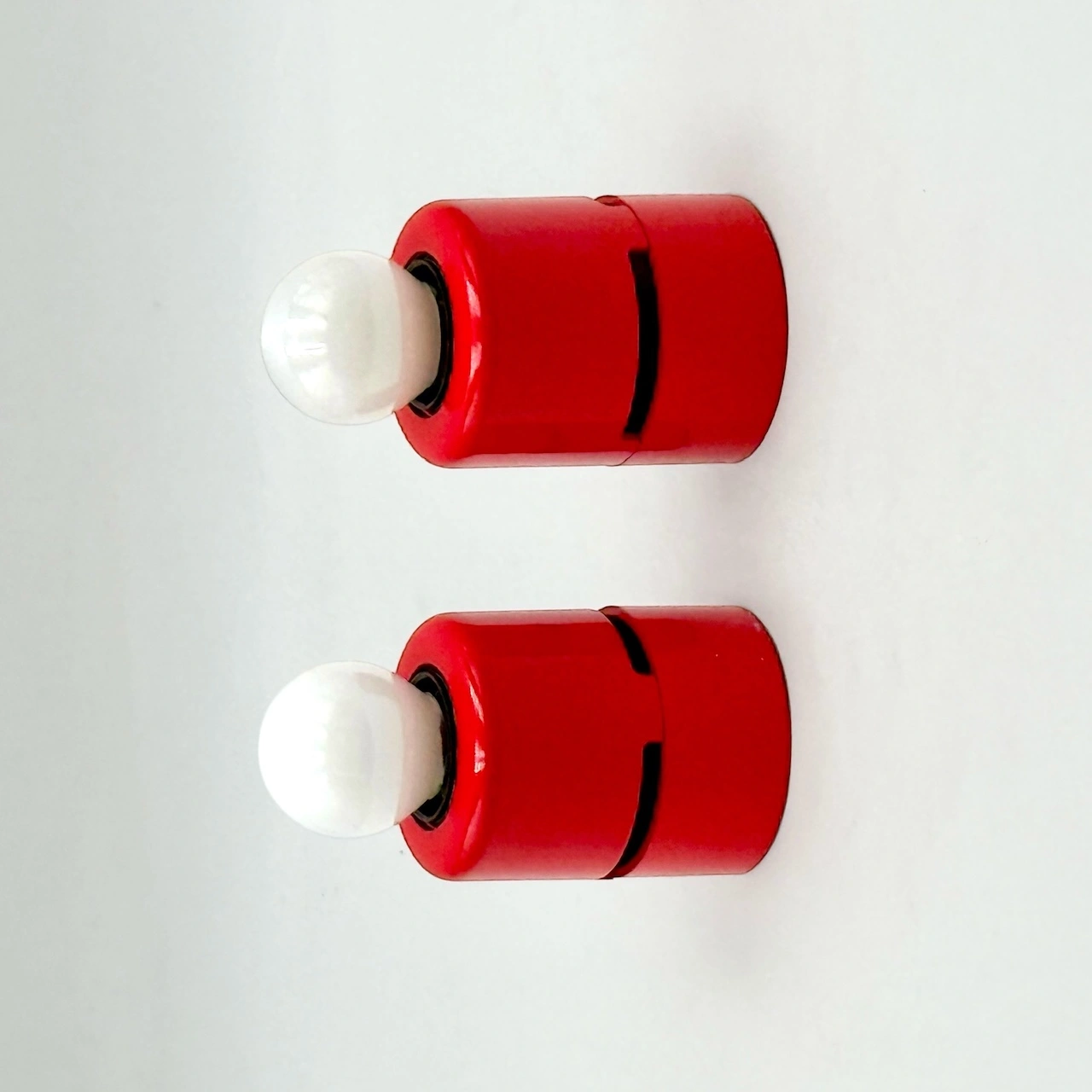 Compact yet expressive, each lamp measures 7 × 7 × 8.5 cm. The vivid red surface adds a confident accent to neutral walls and works beautifully with warm materials like wood or brass. The minimalist shape, softened by its rounded edges, captures the Milanese mix of precision and emotion that made Stilnovo famous.