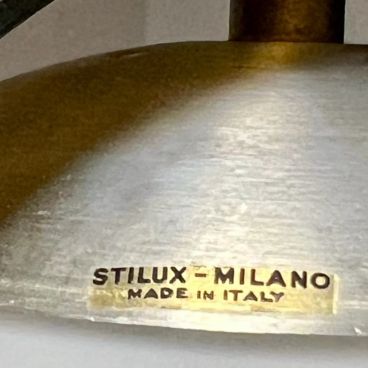 Iconic 70s Space Age Lamp from Stilux Milano. Luxurious hues of gold-toned metal with brown perspex details and opaline glass, making it a statement piece.