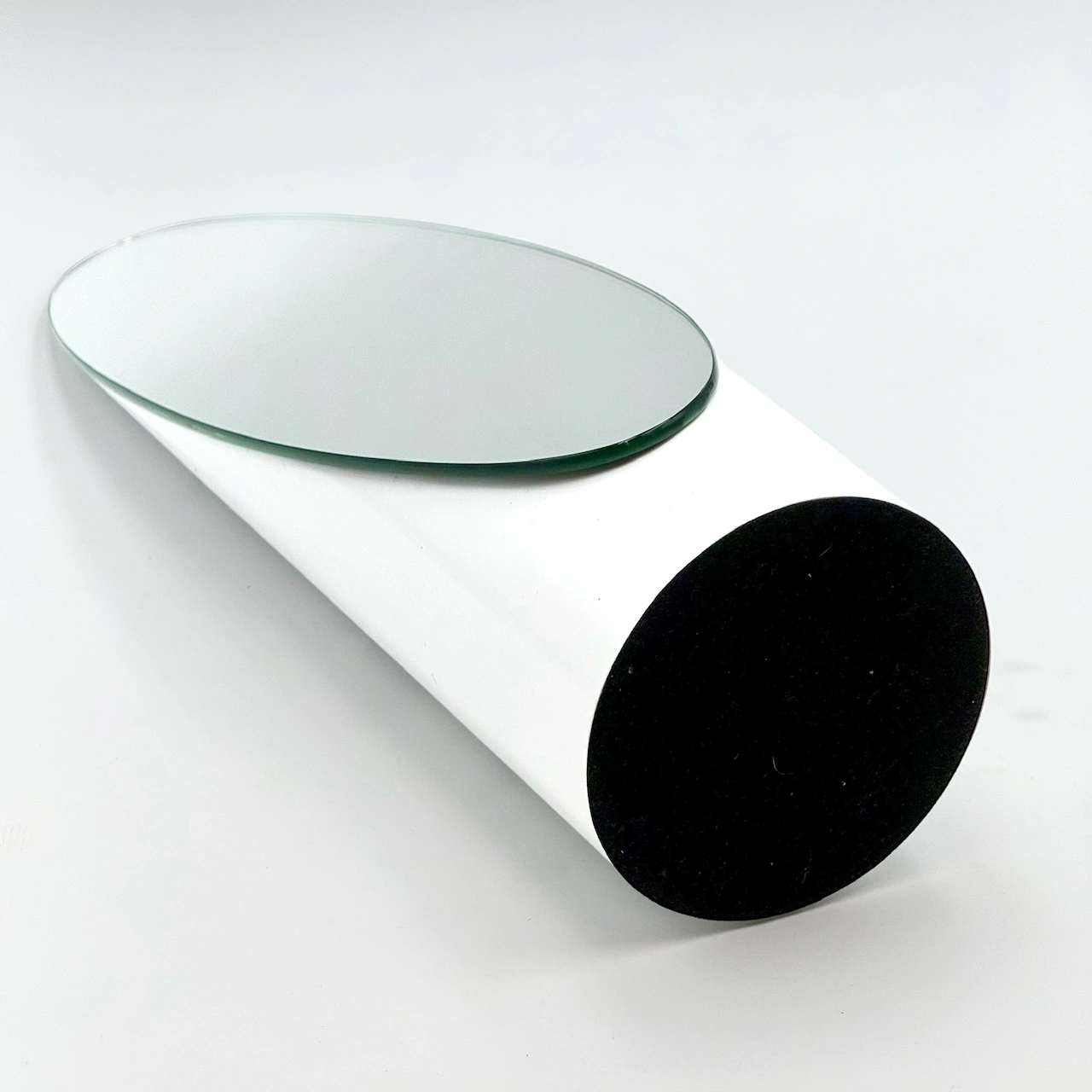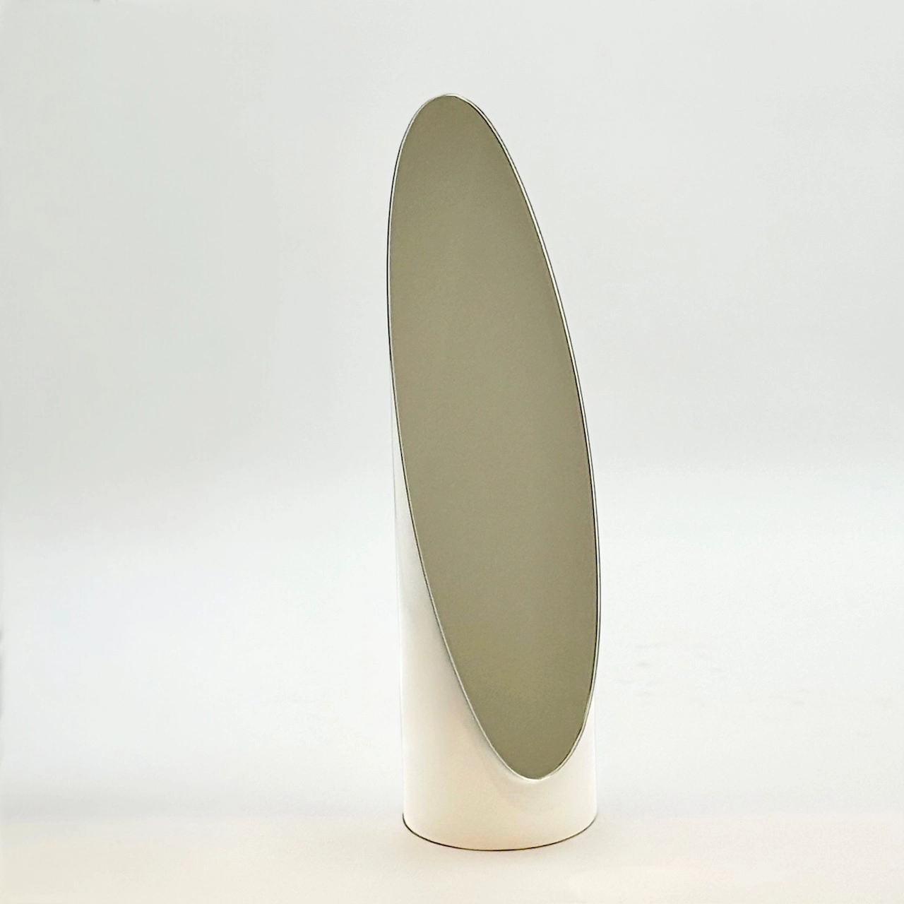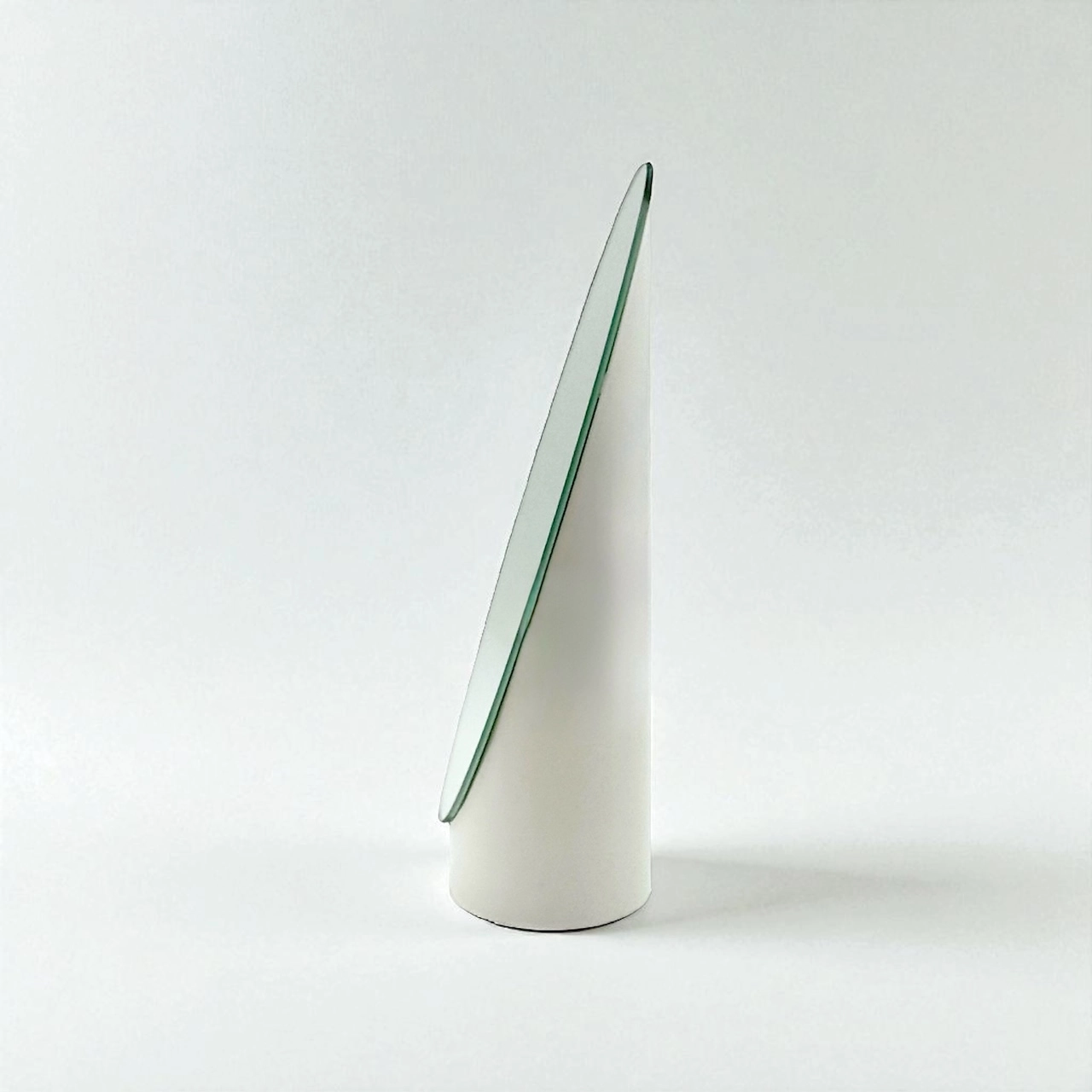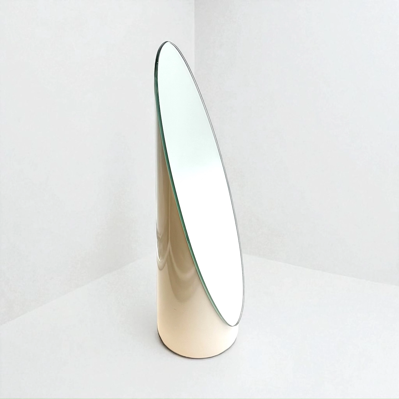 The mirror’s compact form makes it a perfect addition to consoles, dressing tables or curated design shelves. The white finish, emphasizes its sculptural lines and modernist flair. This white lipstick mirror stands as both a functional piece and a collectible accent—an homage to the radical spirit of Italian design during its most experimental decade.