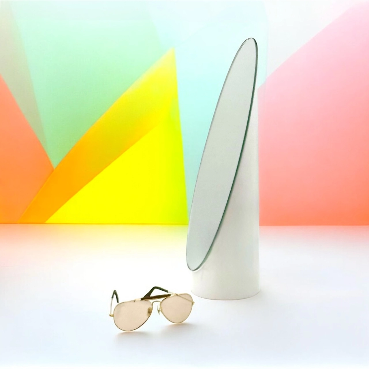 Inspired by the iconic Lipstick mirror known as Specchio Unghia conceived by Rodolfo Bonetto and produced in Italy in the 70s, it reflects the bold, geometric, and unmistakably 1970s design language.