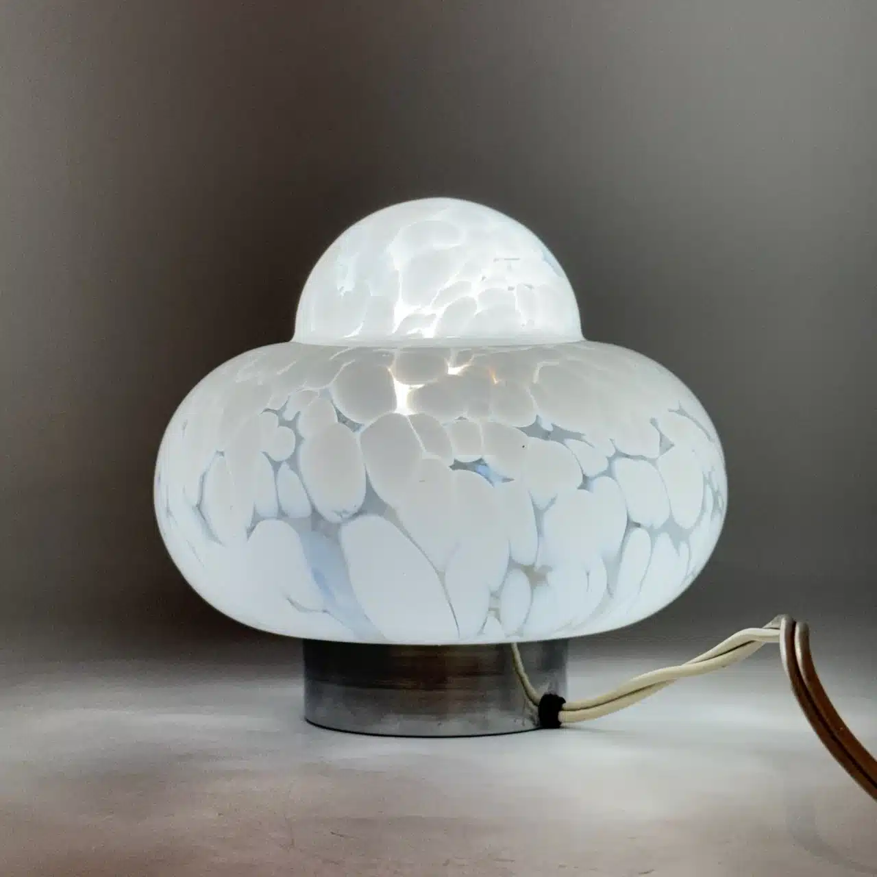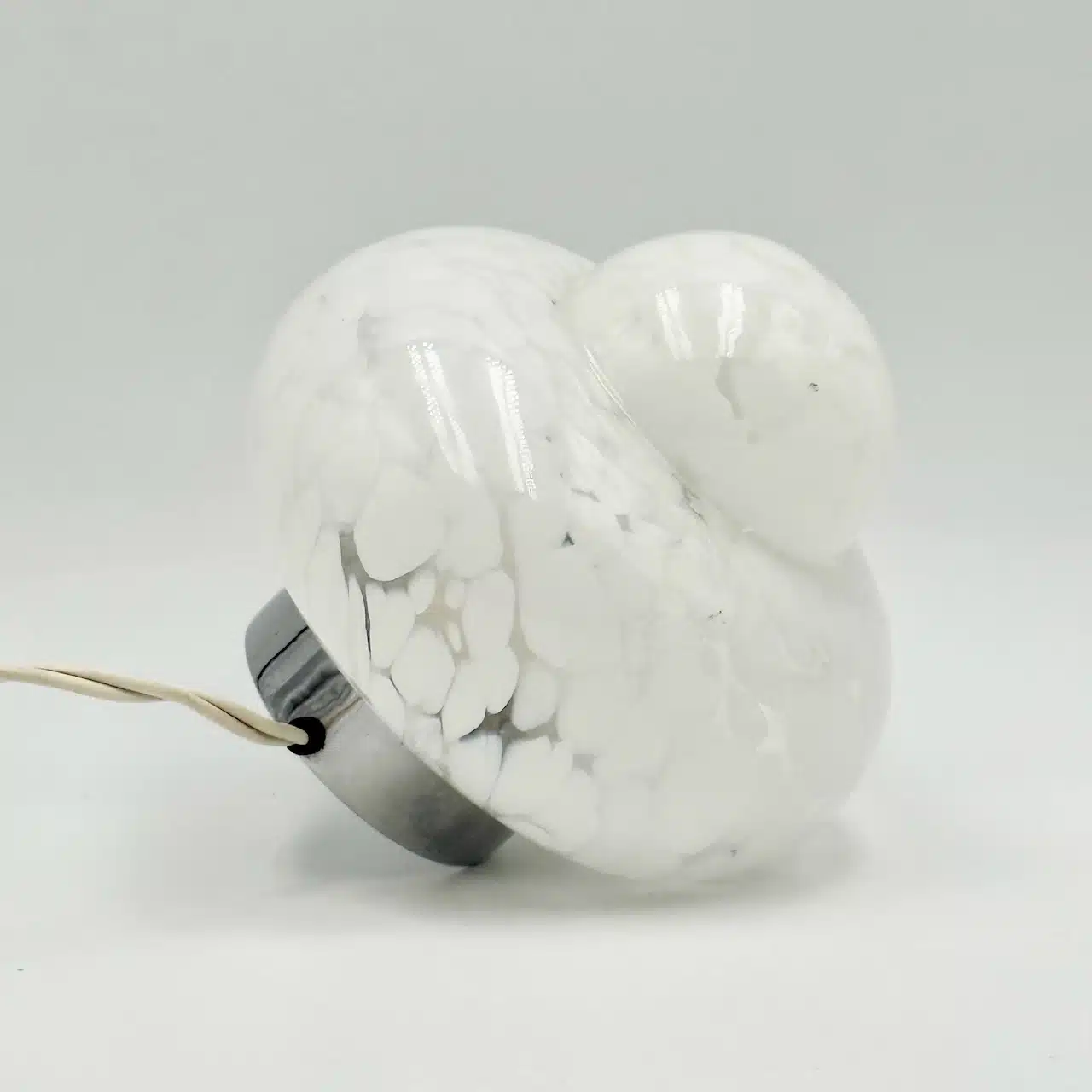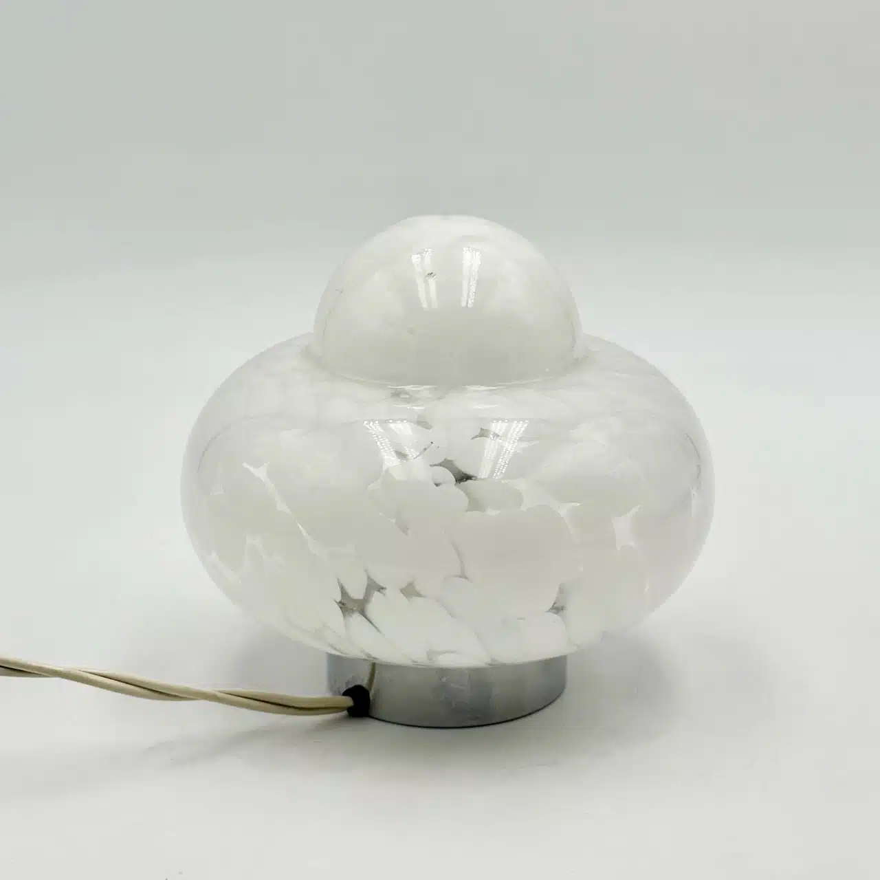 Lovely and rare 60s UFO lamp with handcrafted marbled glass shades, chrome metal base and bold space age design. Perfect for retro or mid-century interiors.