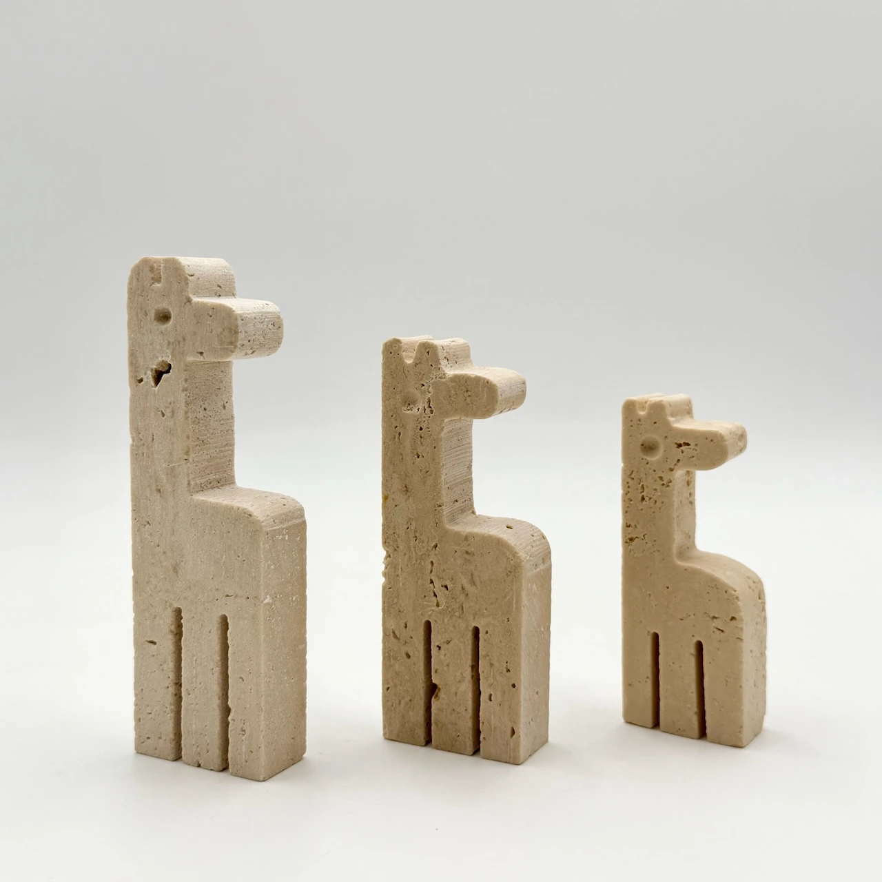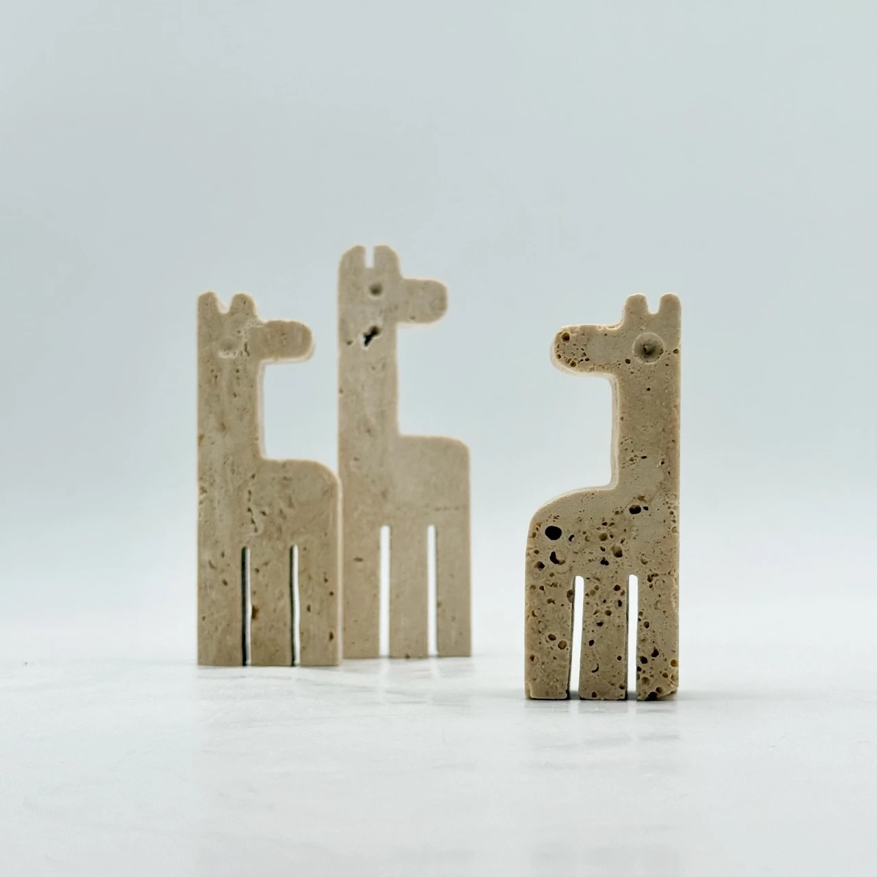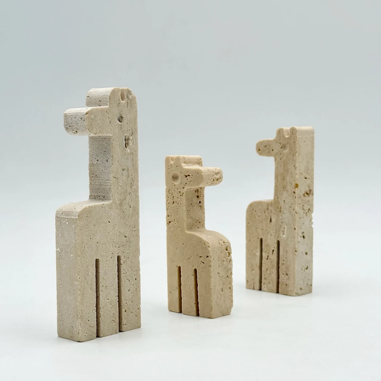 Similar travertine animal sculptures have been attributed by auction houses and specialist platforms to Enzo Mari. However, in the absence of archival documentation, this set is presented as an anonymous example of Italian artisanal production from the 1960s–1970s.