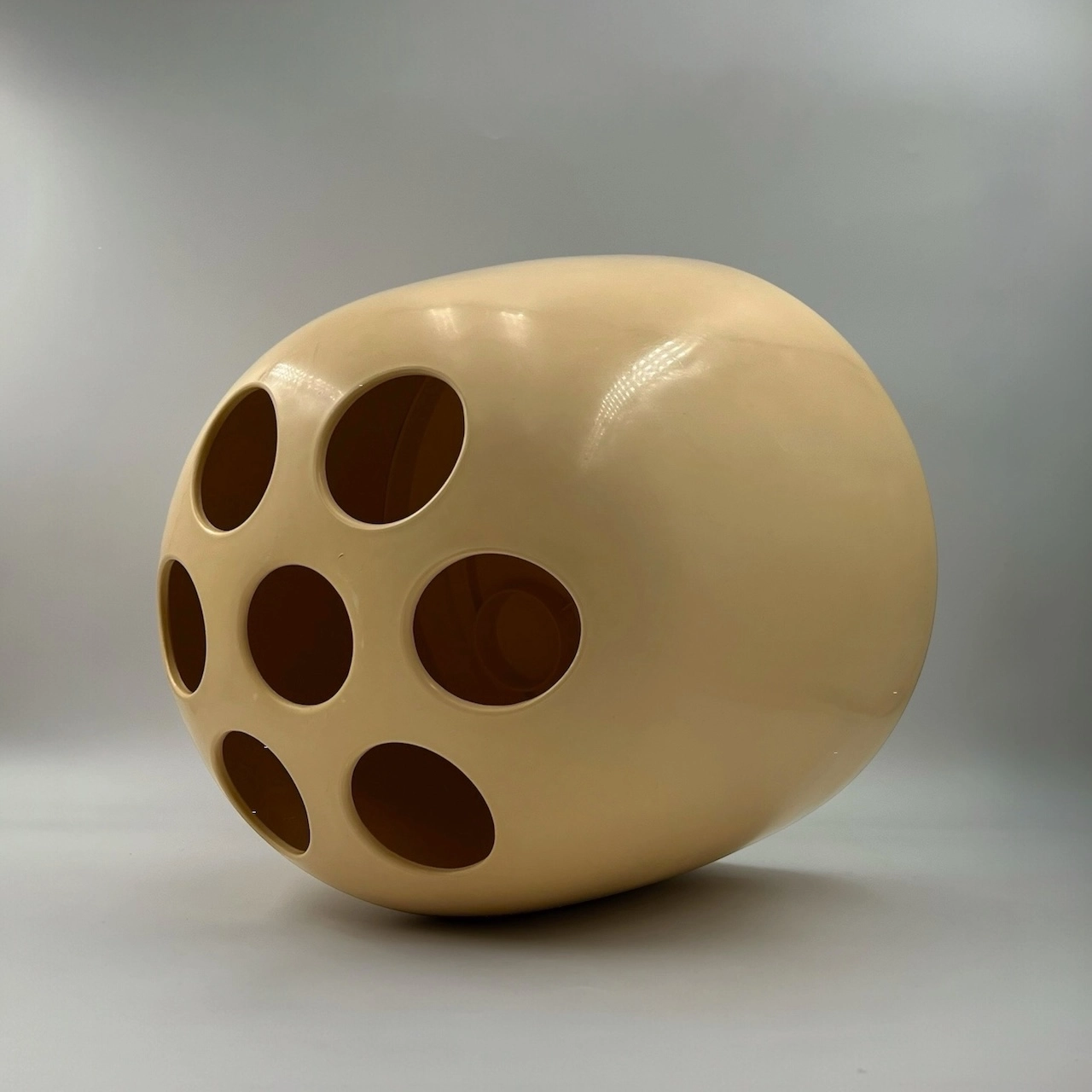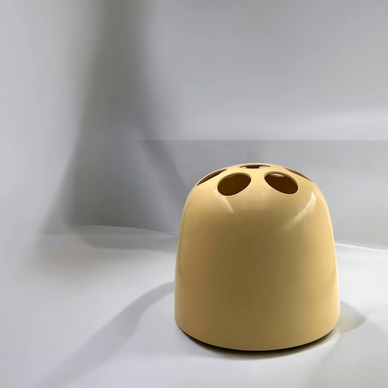 The Artemide Dedalo umbrella holder, designed by Emma Gismondi Schweinberger in the mid-Sixties, is a true icon of the Space Age design movement. Crafted for Artemide Milano, this piece perfectly embodies the futuristic aesthetics of its era, featuring a sleek, off-white color that adds a touch of retro charm to any space.