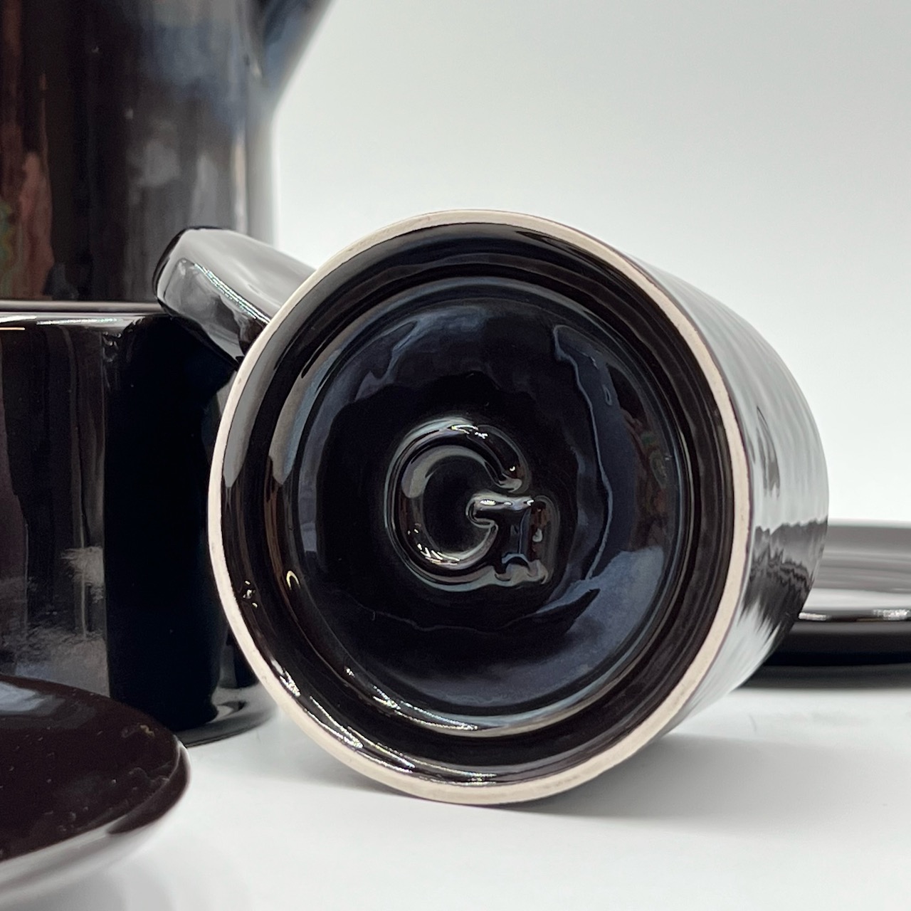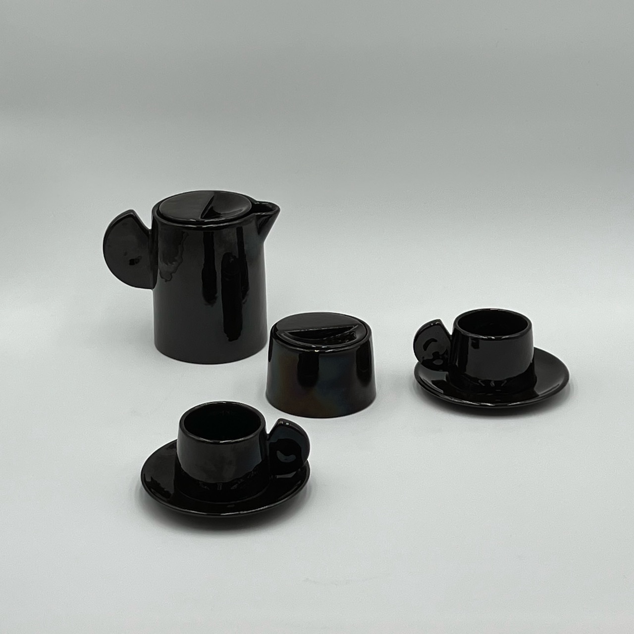 item. coffee setmaker. Gabbianelliperiod. 1960scountry. Italymaterial. ceramiccolor. dark amaranthdimensions (cm). Cups 10,5 x 7,7 x 5,5 cm (H). Plates 14 cm diameter. Carafe 17 wide x 14 cm (H), base diameter 11 cm. Sugar Bowl 10 cm diameter, 14 cm (H).condition. excellent vintage conditions. no chips, the traces of wear are limited to superficial scuffs.art. no. 1222