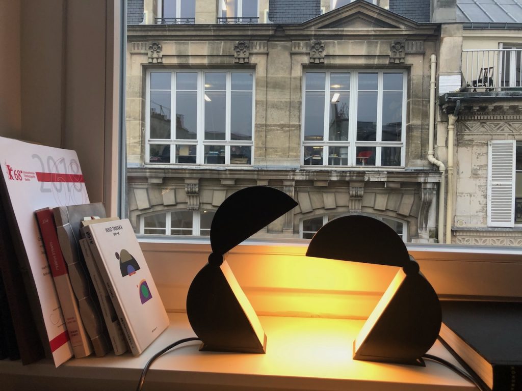 Originally conceived as a wall lamp, it can be used as table or desk lamp as well. The uniqueness of design comes with perfect functionality – the lamp lights up when it is opened, and switches off when closed.