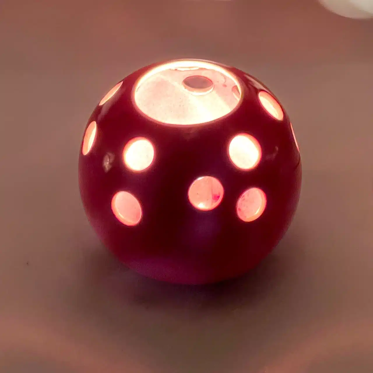 The lamps charm lies in its ability to create a captivating play of light. The light filters through the carefully crafted holes, casting a mesmerizing glow and adding warmth to any room. Whether used as ambient lighting in a living space or as a unique statement piece on a bedside table, this lamp is sure to elevate your interior design.