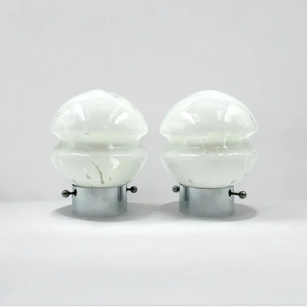 Measuring 15 cm in height and 12 cm in diameter, these lamps are the perfect size for a bedside table, side table, or reading nook. The lamps are in excellent condition, with intact glass and shiny chrome plating, preserving their original beauty over the decades. Their timeless appeal makes them suitable for both modern and retro-inspired interiors.