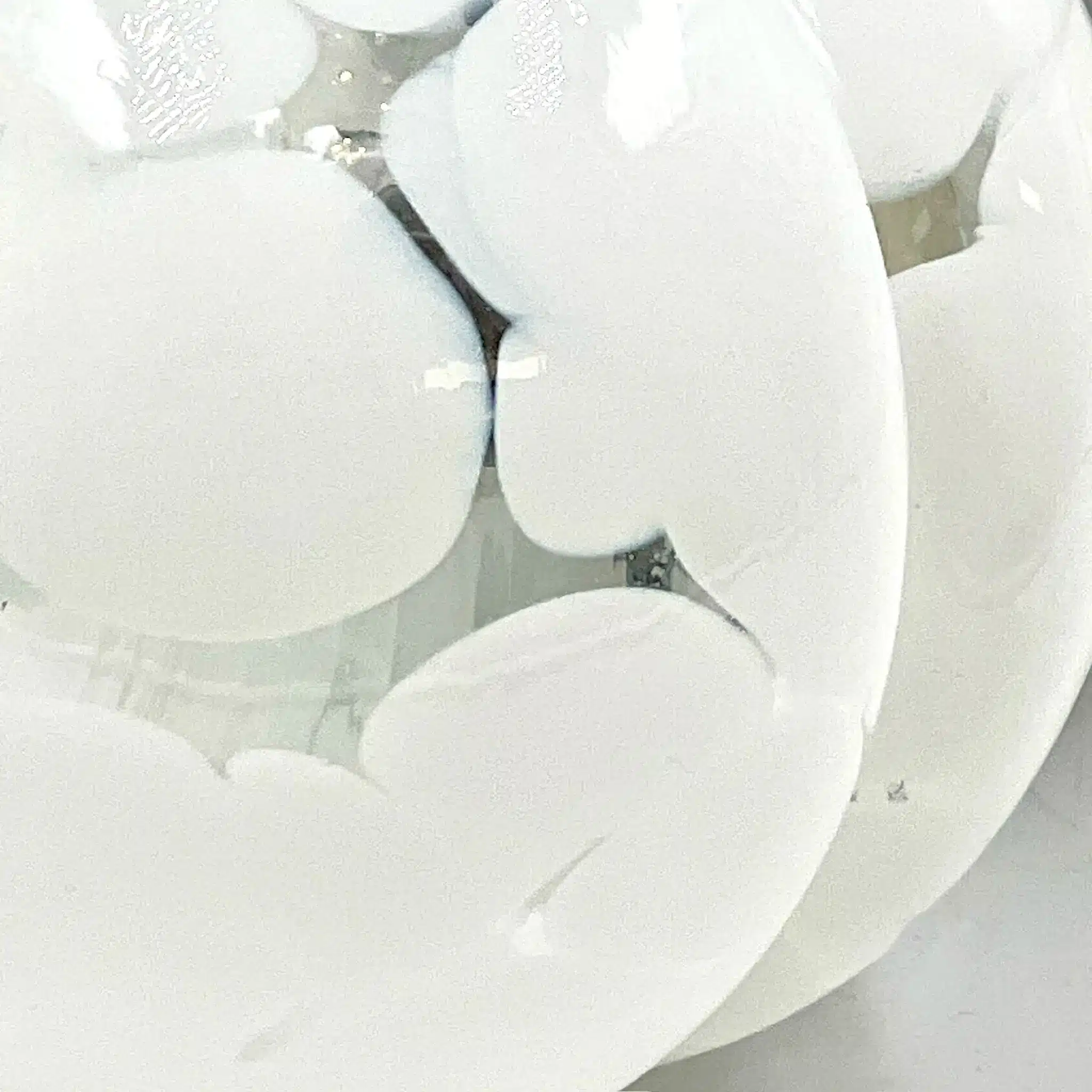 Crafted in the 1970s, these abat-jour (table lamps) are a reflection of mid-century modern design, showcasing the eras creativity and attention to detail. The white glass structure, adorned with subtle transparent veining, adds a soft, diffused glow to any space. The glass is securely attached to the metal base with its original screws, ensuring both stability and authenticity.