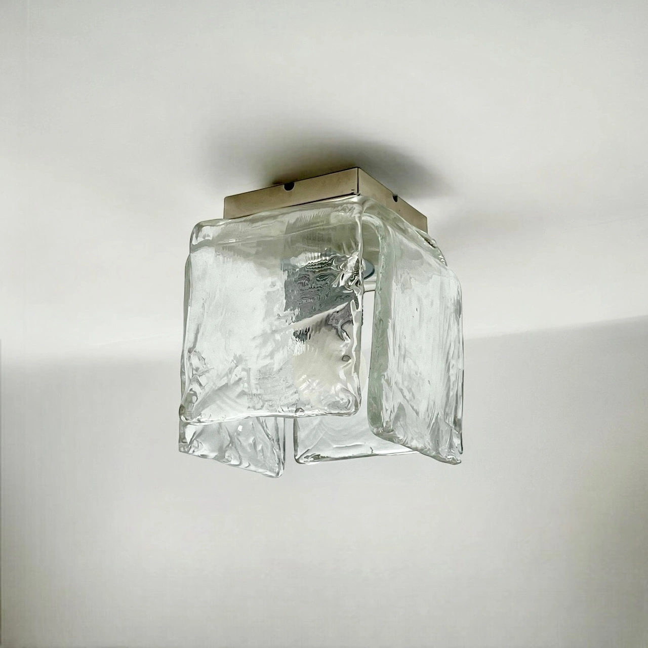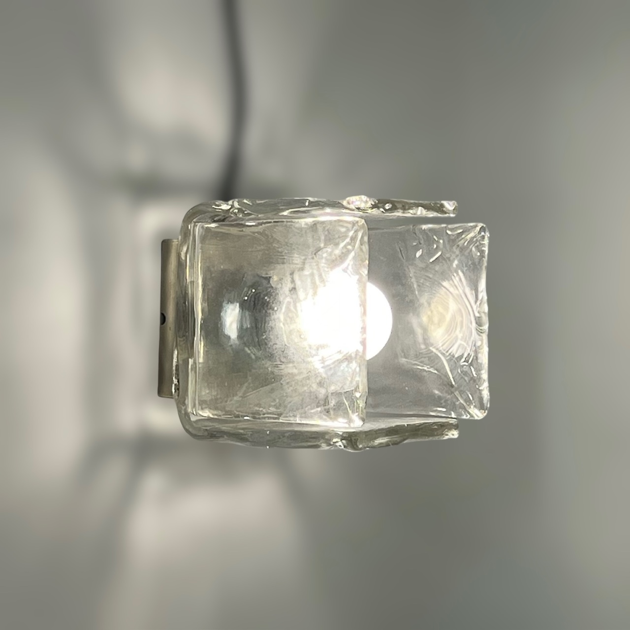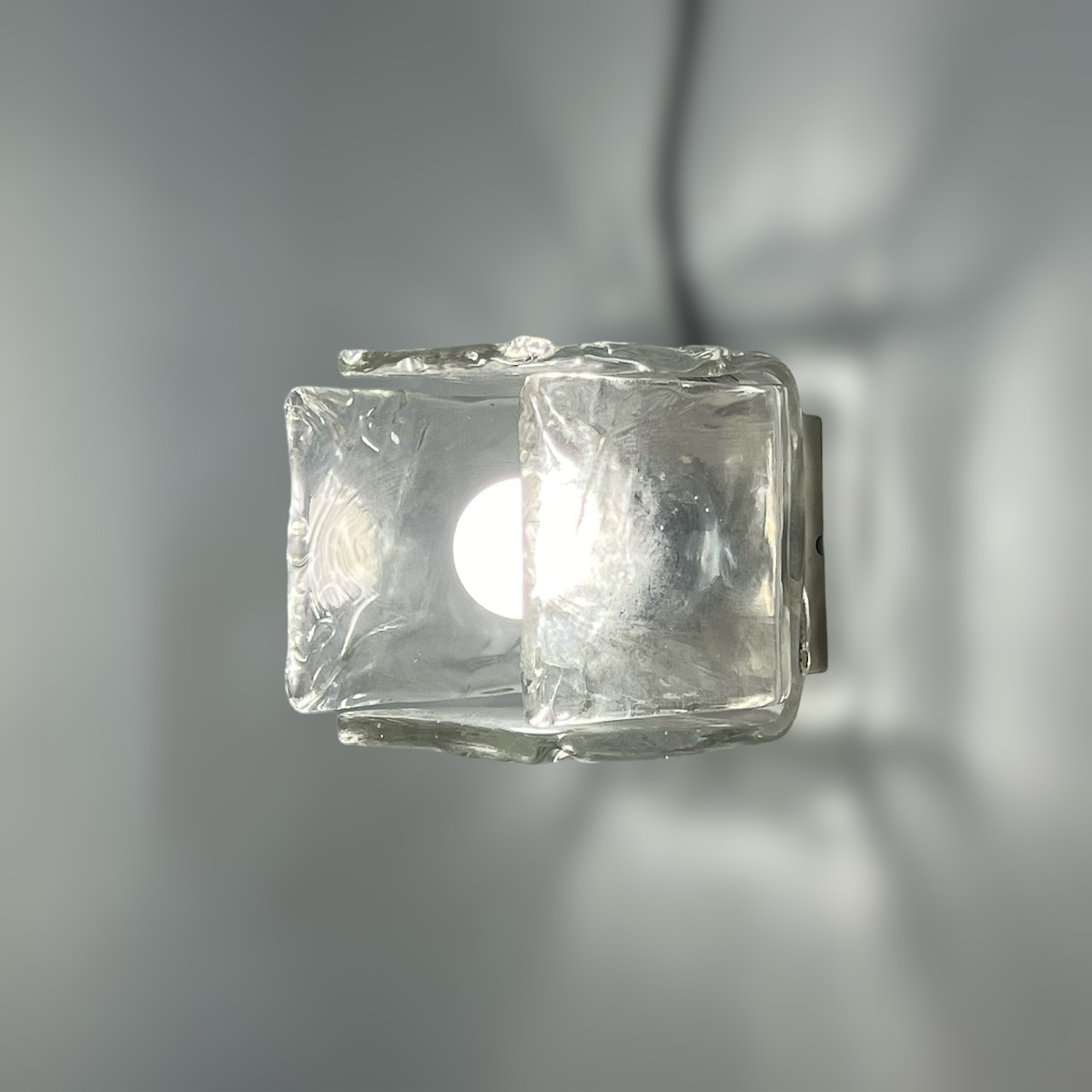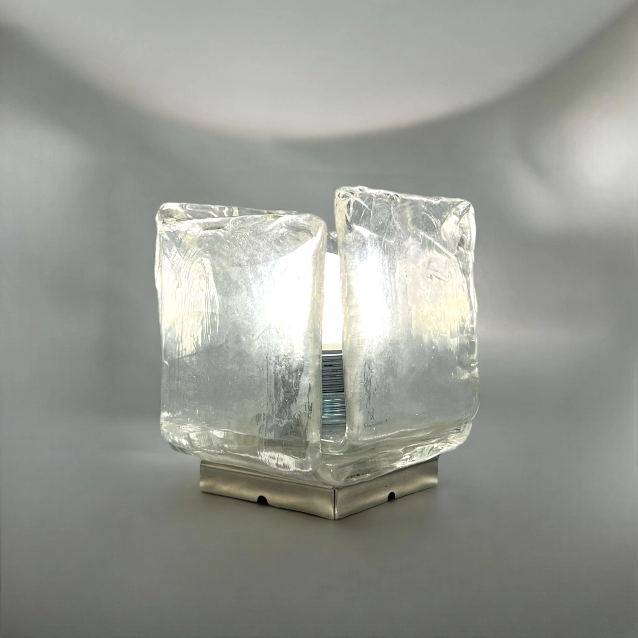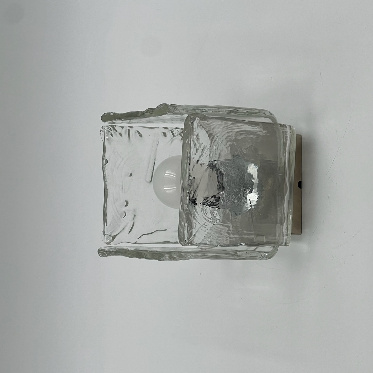 Beautiful and rare vintage 70s lamp in Murano ice-like glass by Toso – suitable as a wall or ceiling light. New old stock in excellent vintage conditions.