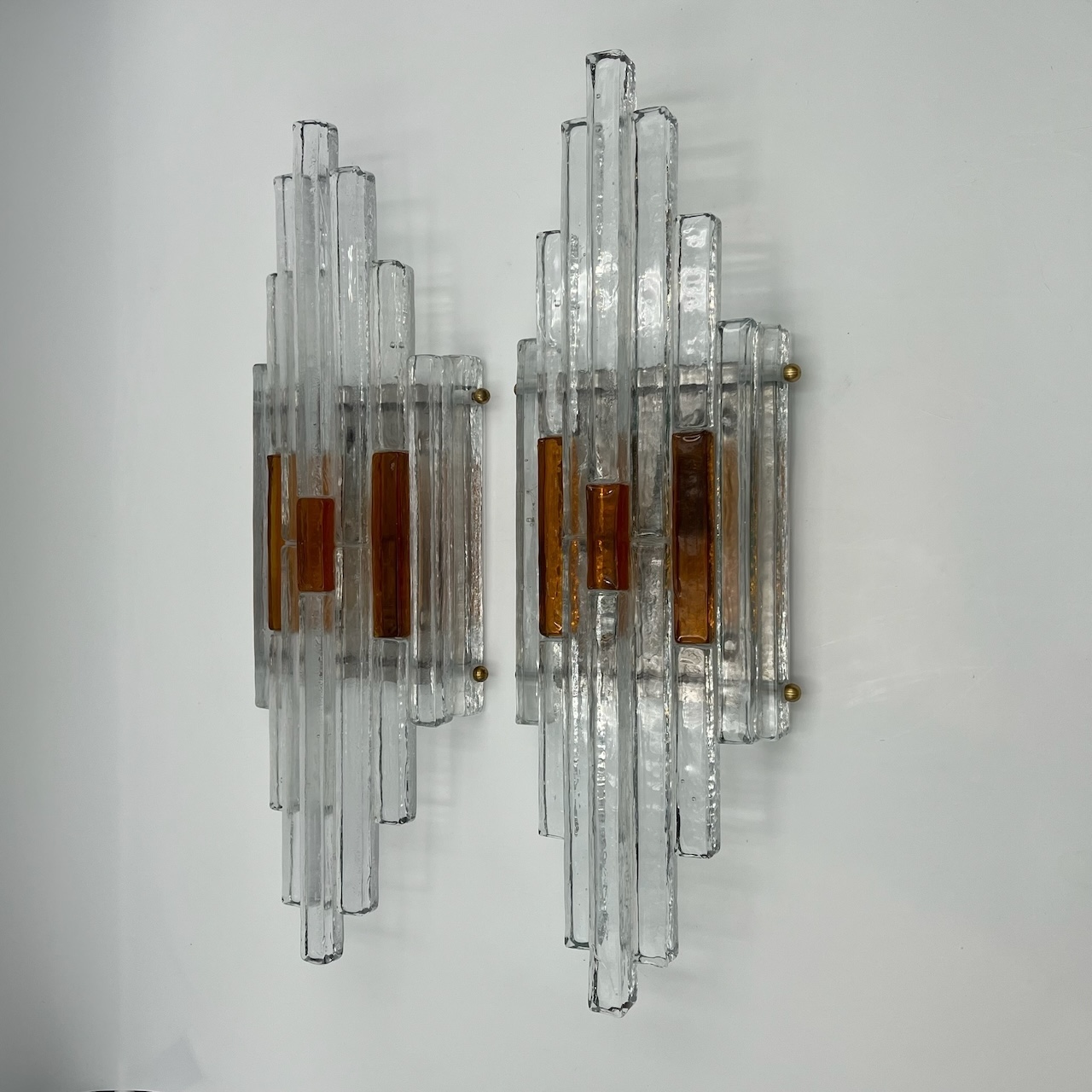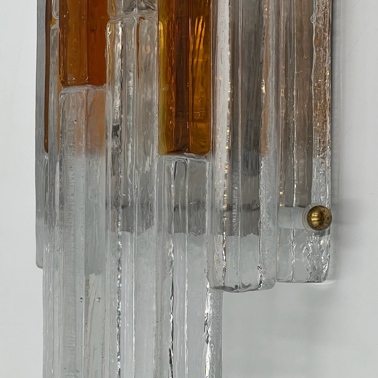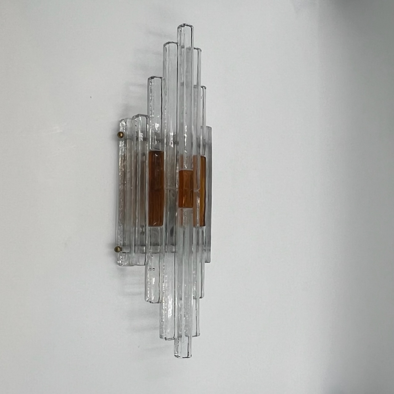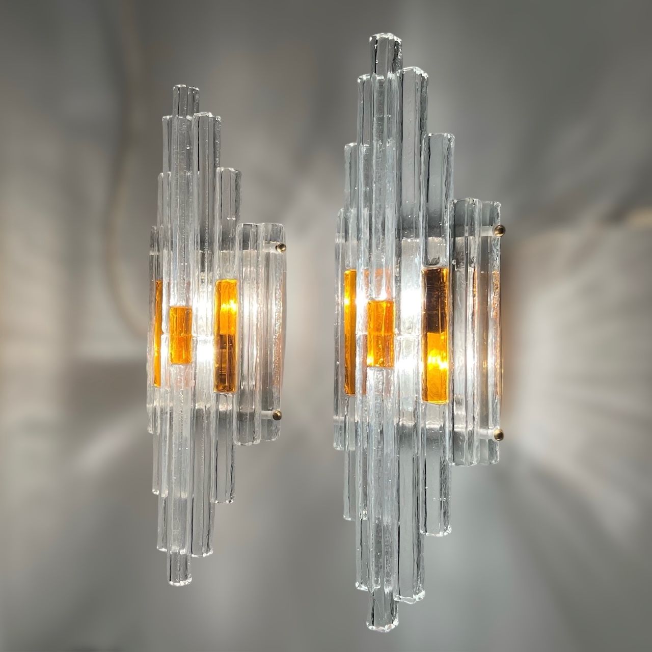 Vintage 70s Lamps Poliarte Linea Series designed by Albano Poli and produced by Poliarte in Verona in the 1970s. Iconic Design Sconces Made of Handmade Glass. Amazing Visual Impact.