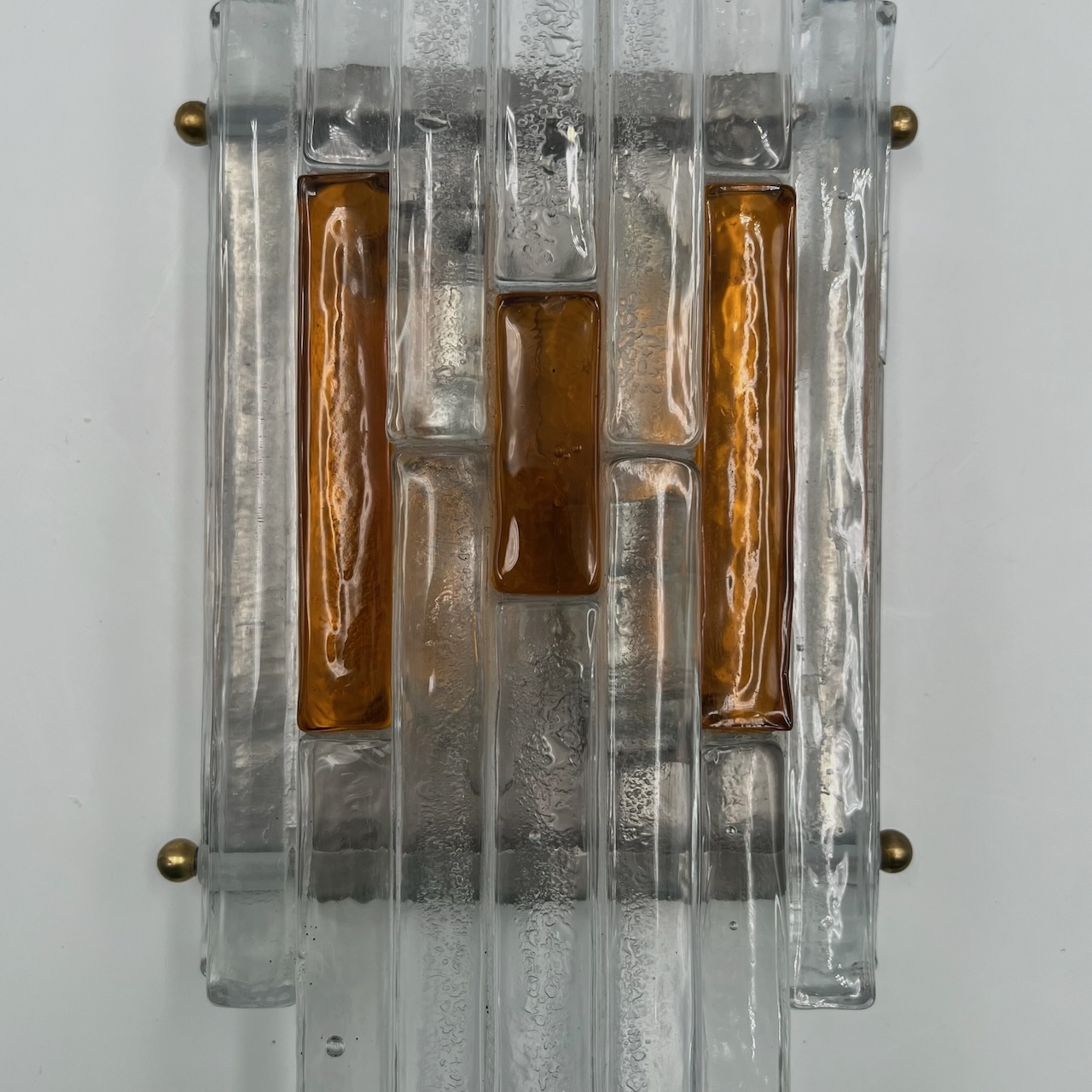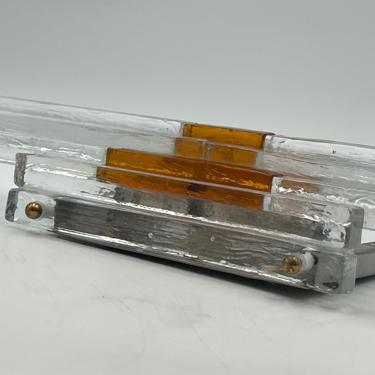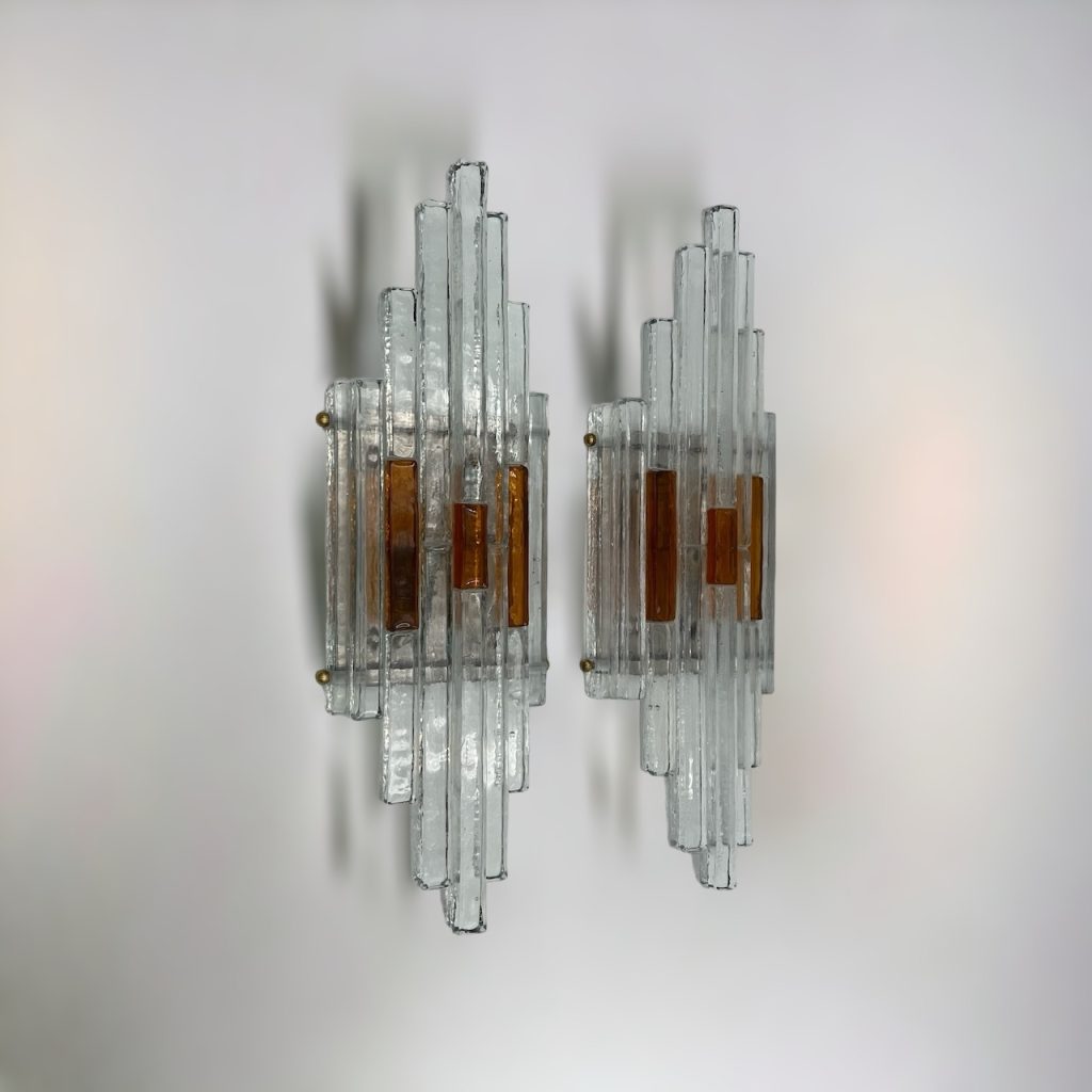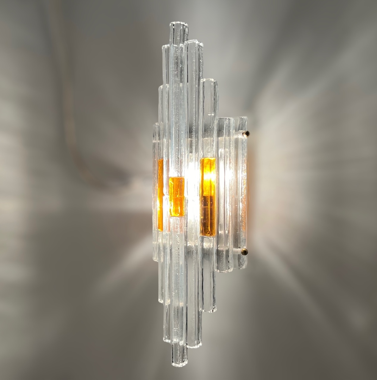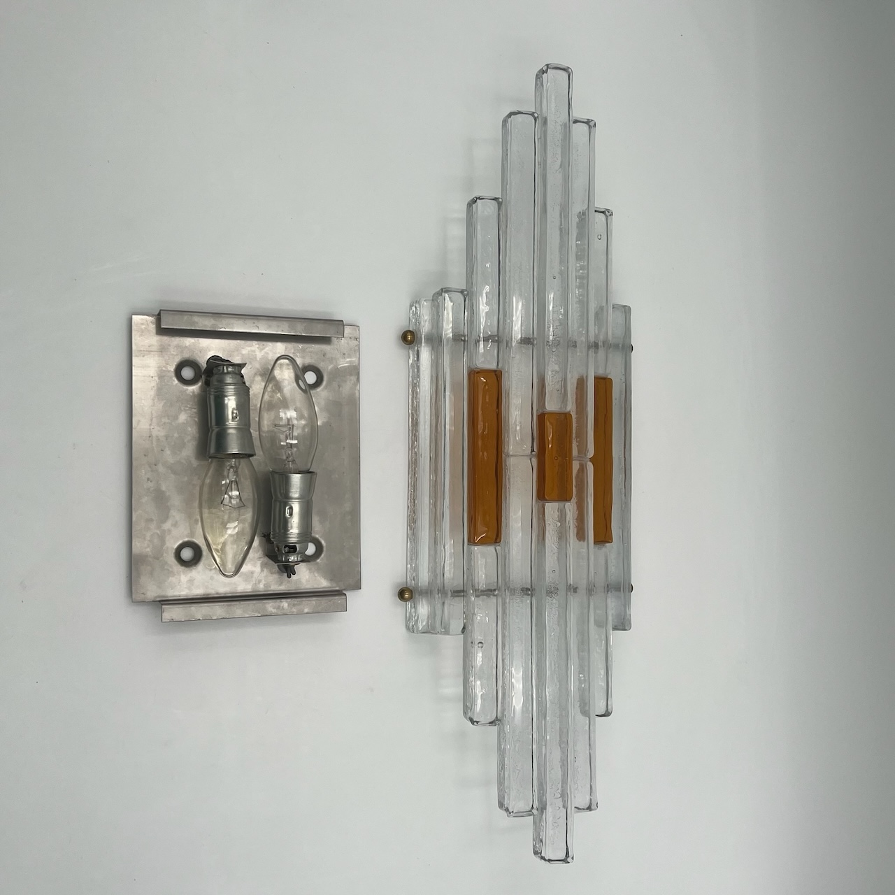 Vintage 70s Lamps Poliarte Linea Series designed by Albano Poli and produced by Poliarte in Verona in the 1970s. Iconic Design Sconces Made of Handmade Glass. Amazing Visual Impact.