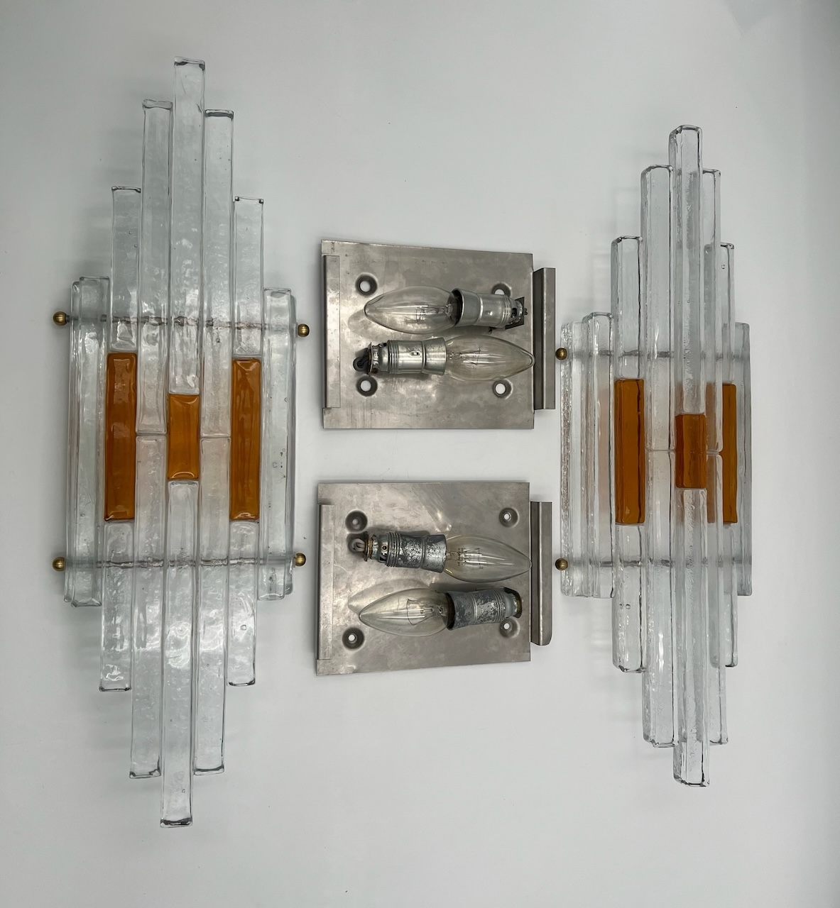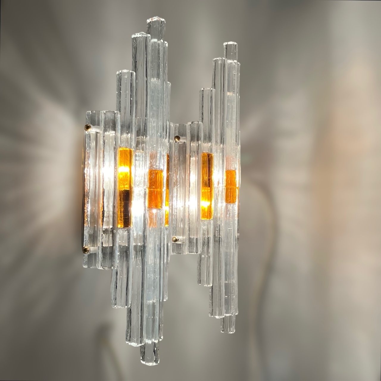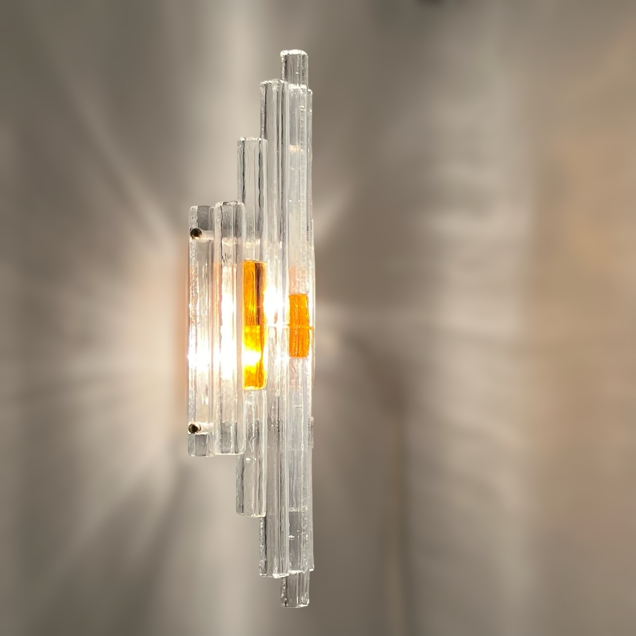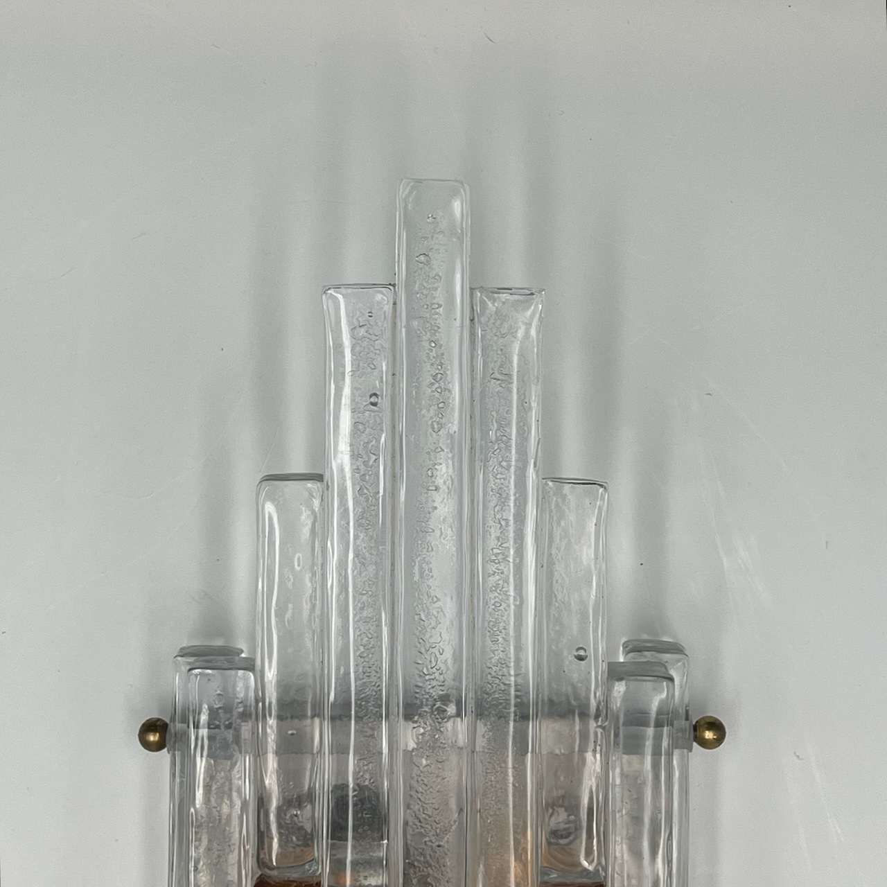 Vintage 70s Lamps Poliarte Linea Series designed by Albano Poli and produced by Poliarte in Verona in the 1970s. Iconic Design Sconces Made of Handmade Glass. Amazing Visual Impact.