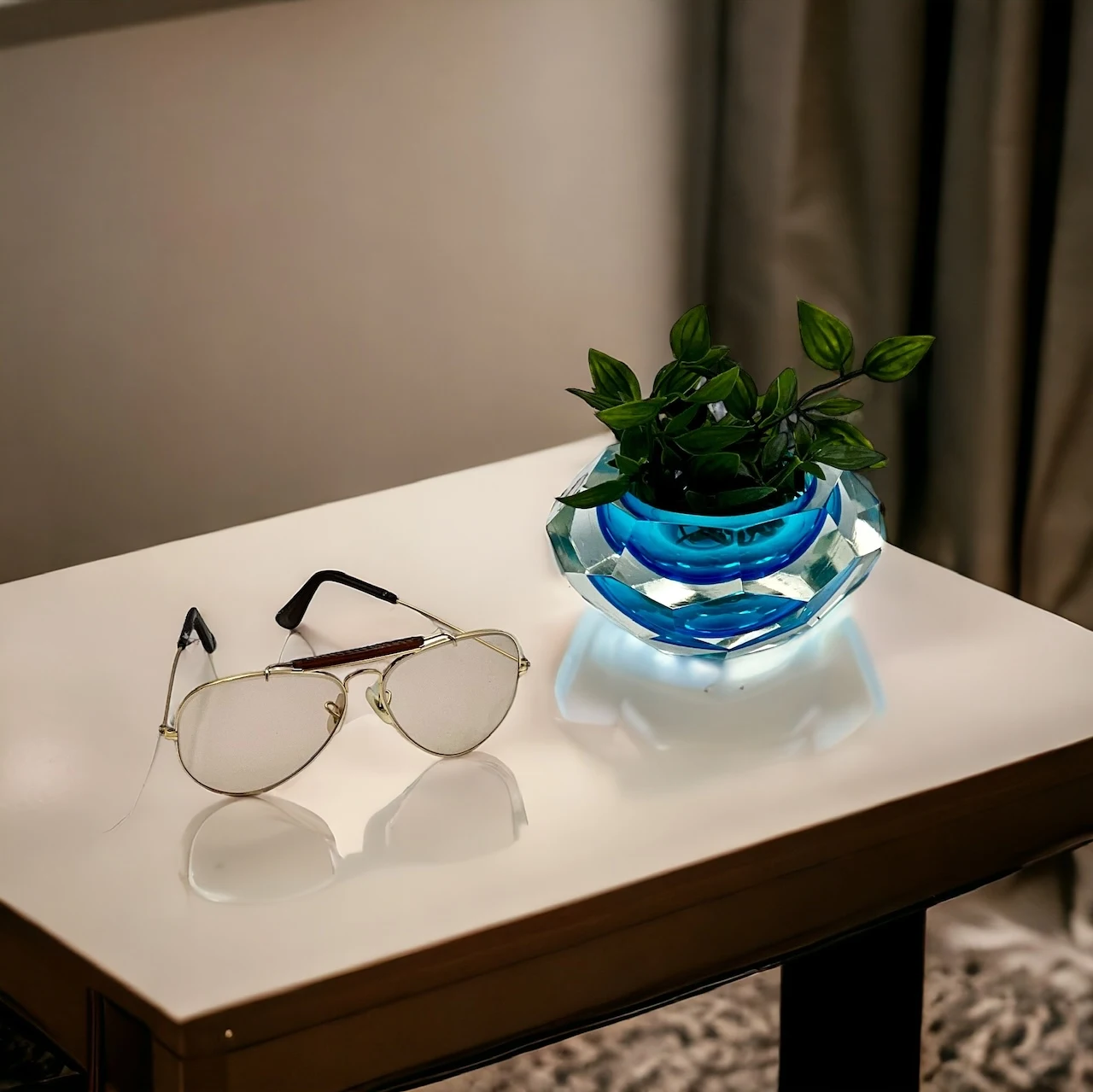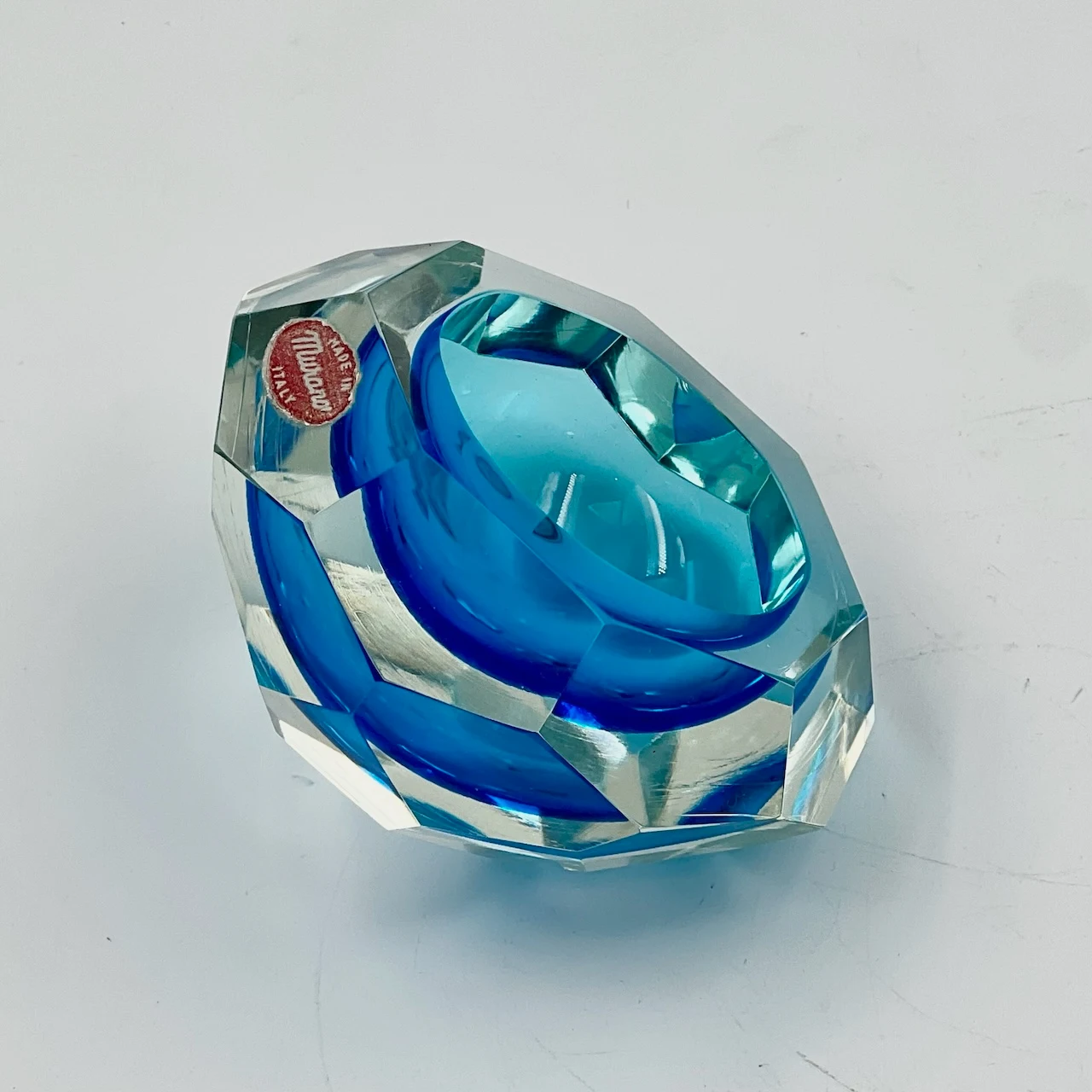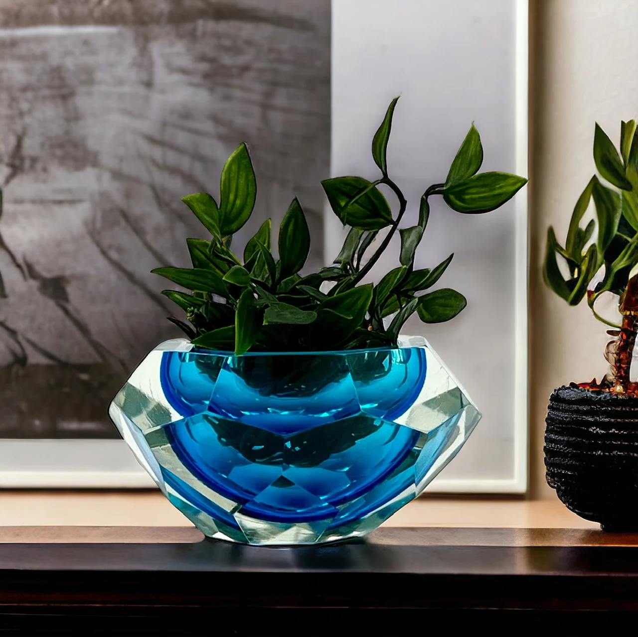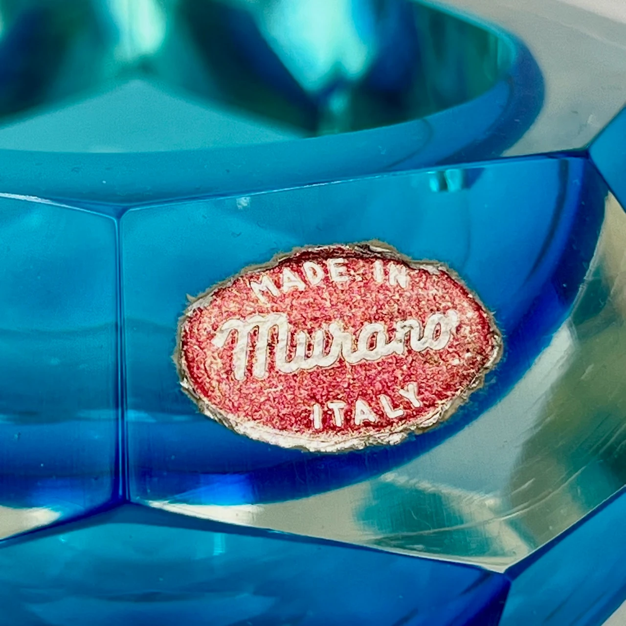 Add a touch of Italian elegance to your home with this stunning Murano Sommerso glass vase. Its exquisite craftsmanship, unique polygonal shape, and vibrant blue hues make it a captivating piece of art and a must-have for collectors and lovers of fine glassware.