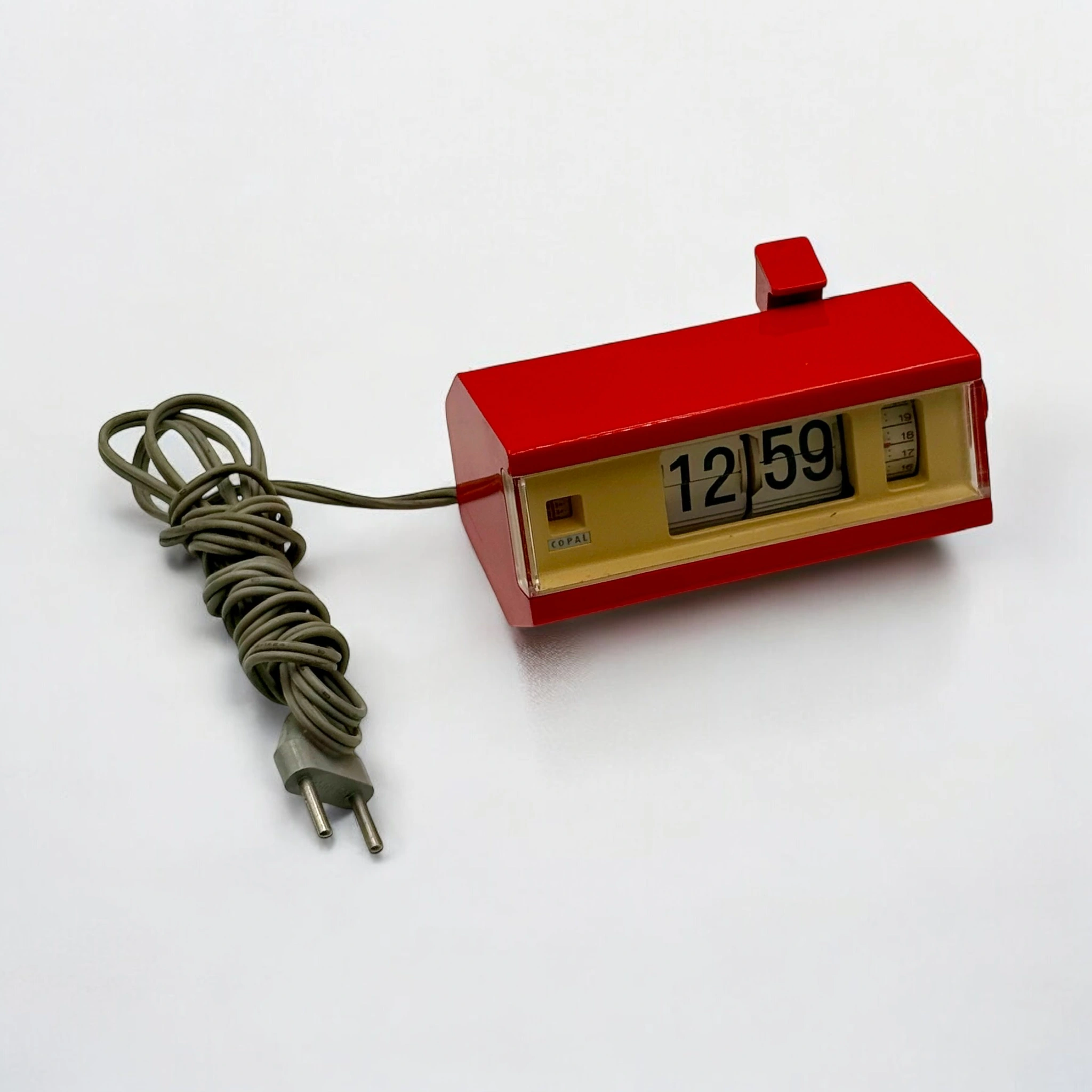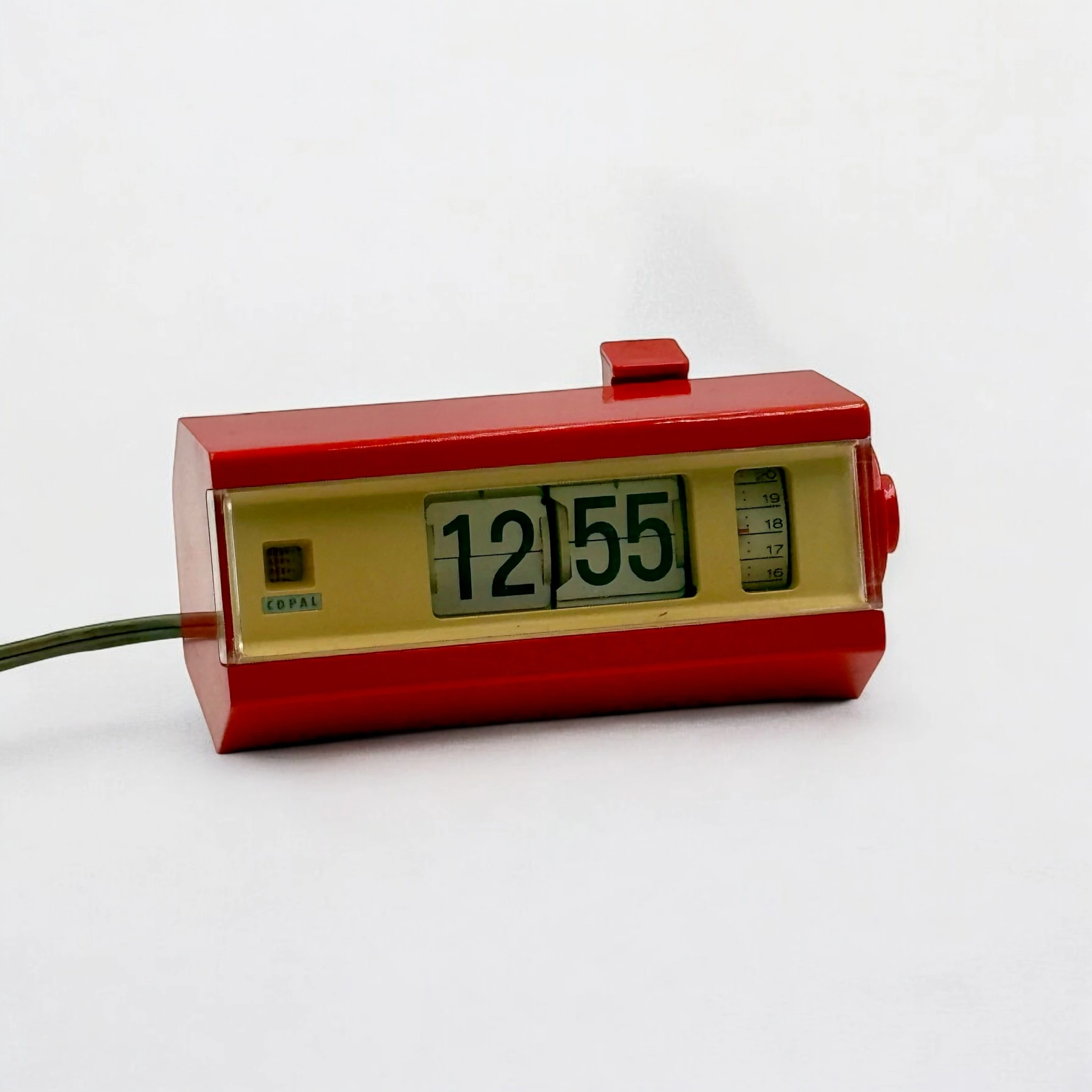 Discover the timeless charm of this Copal Vintage Flip Clock with Alarm and Nightlight, Model 227. Made in Japan during the 60s/70s, this retro style table clock features a vibrant red plastic body with a cream front and bold black numbers.