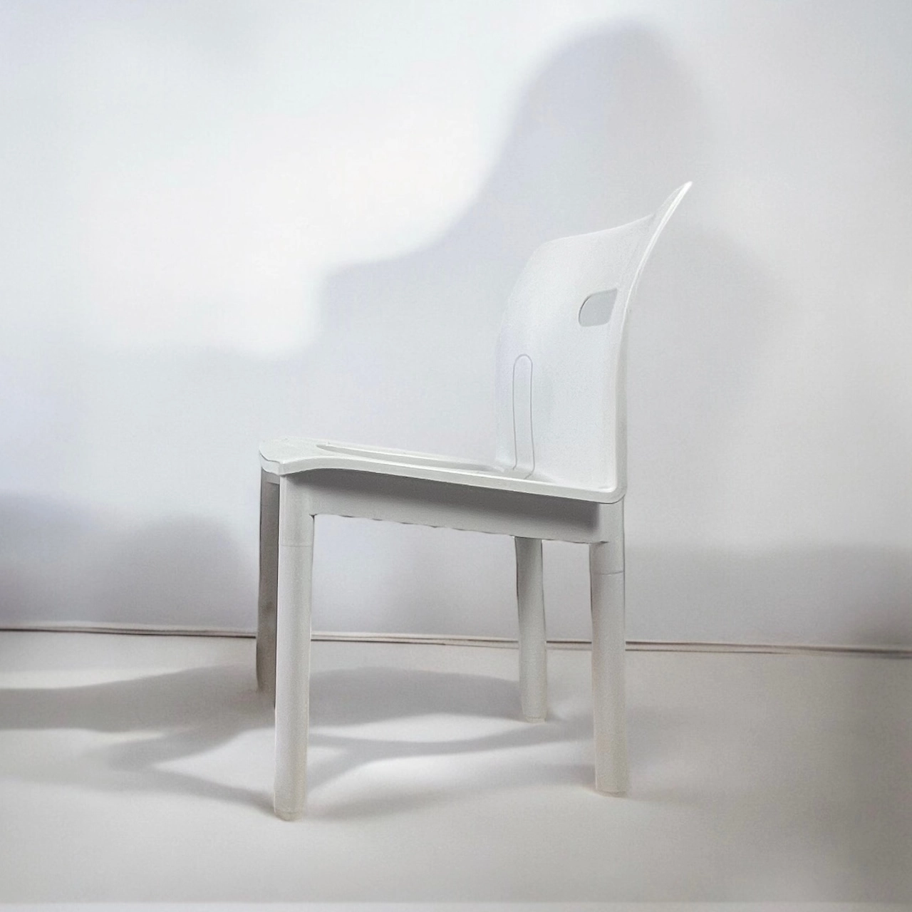 Award-winning vintage Kartell chair model 4870, designed by Anna Castelli Ferrieri in the mid 80s. Single body high quality ABS in a timeless white hue.