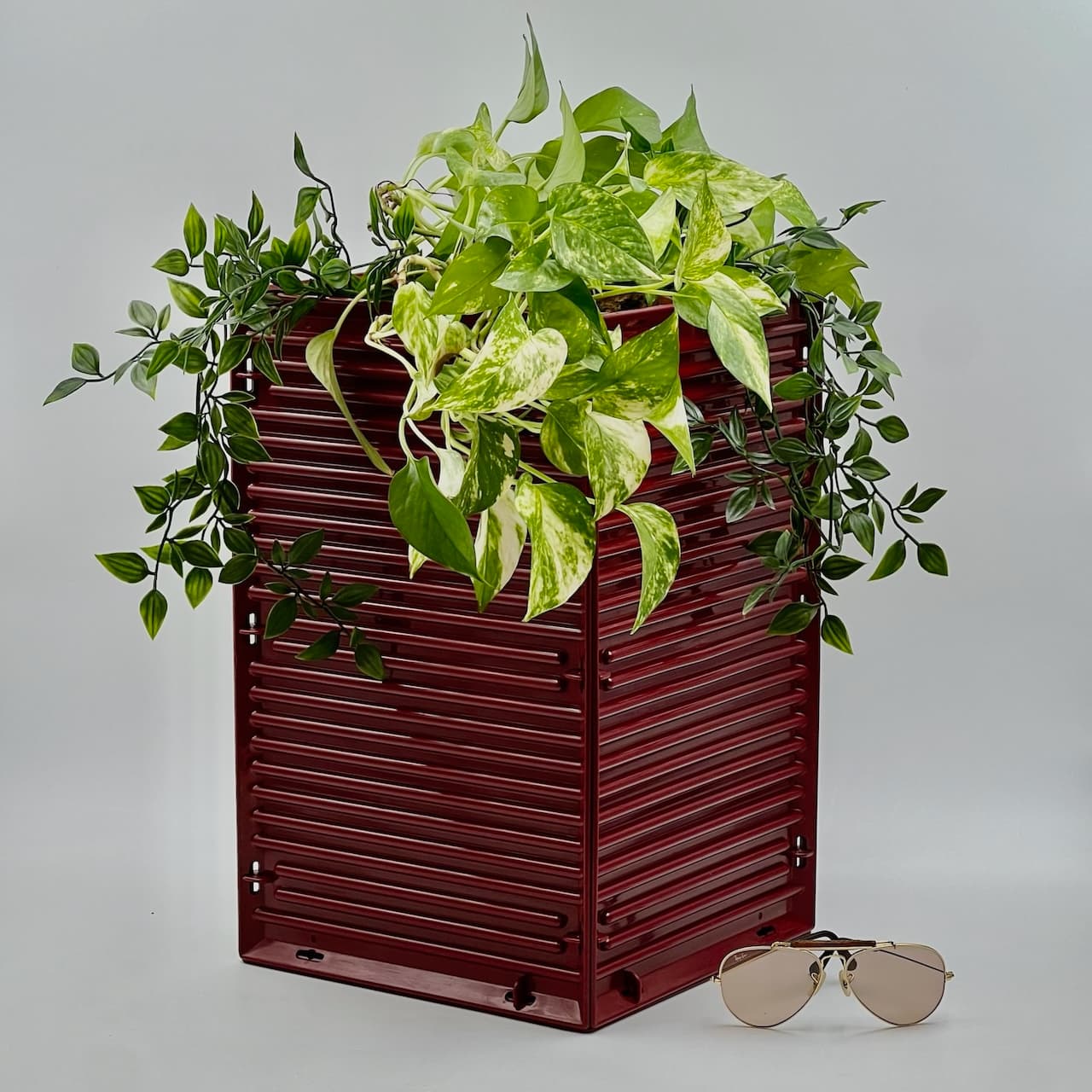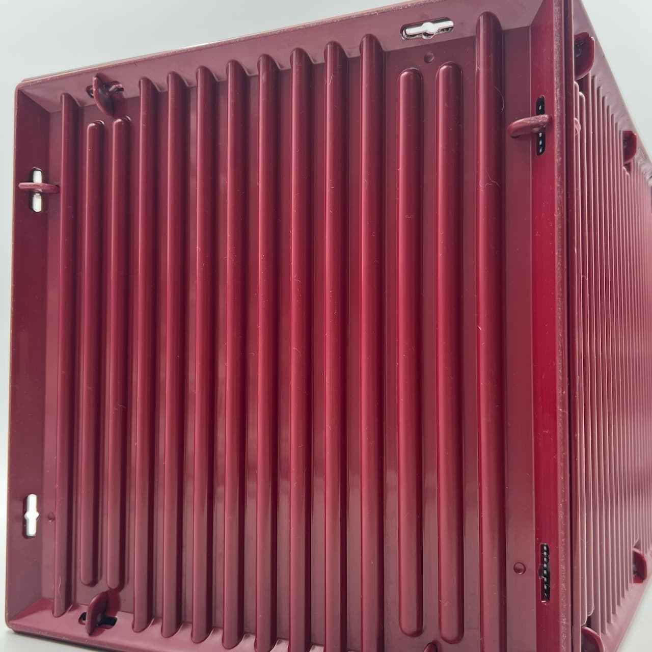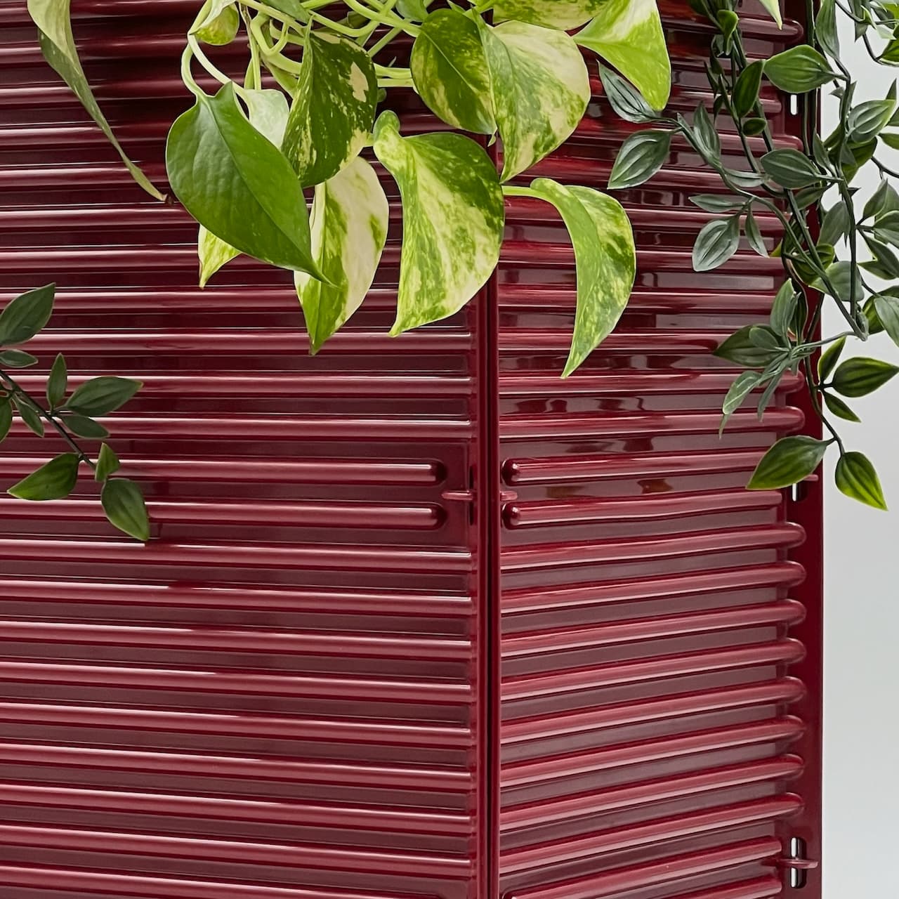 item. paper basketmodel. synthesisdesigner. ettore sottsassmaker. olivettiperiod. 1970scountry. italymaterial. melaminecolor. burgundydimensions (cm). 25x 25 x 40 Hcondition. excellent conditions, with glossy bordeaux hue and light traces of wear inside the basket. Three little hooks out of 16 are not present – however this does not impact the stability of the item.