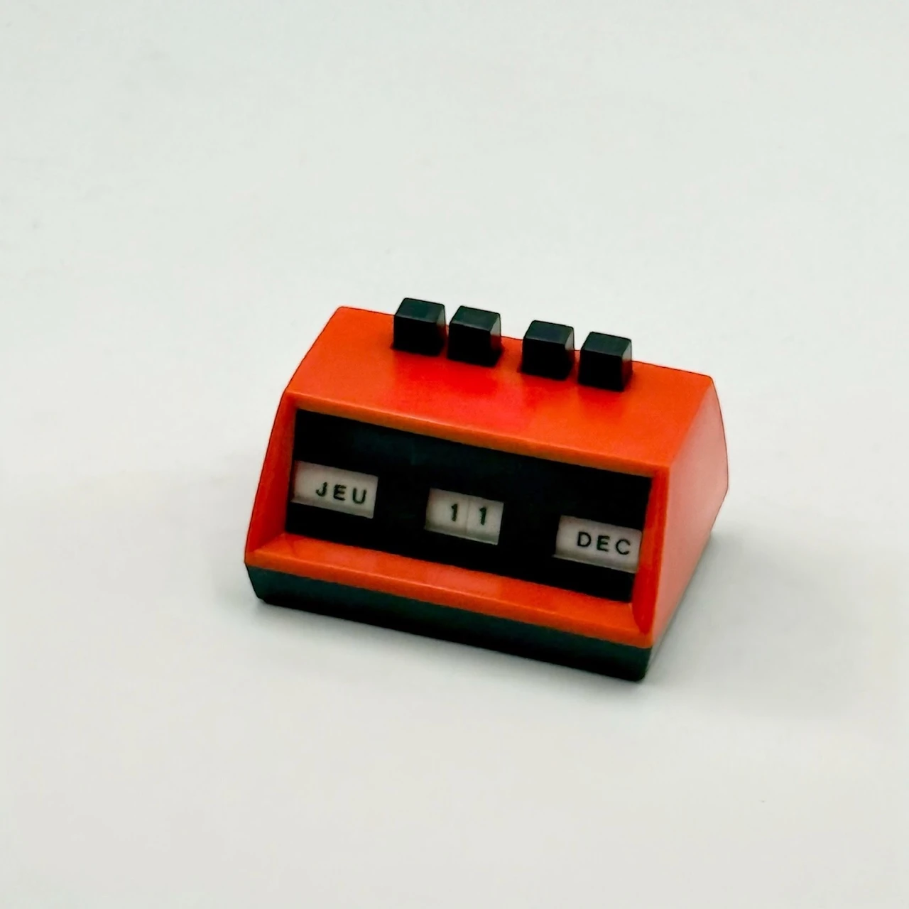 A rare and charming 1970s perpetual calendar in vibrant red plastic, featuring French days and months. A playful Pop design object that brings colour, rhythm and retro character to desks, shelves and curated interiors.