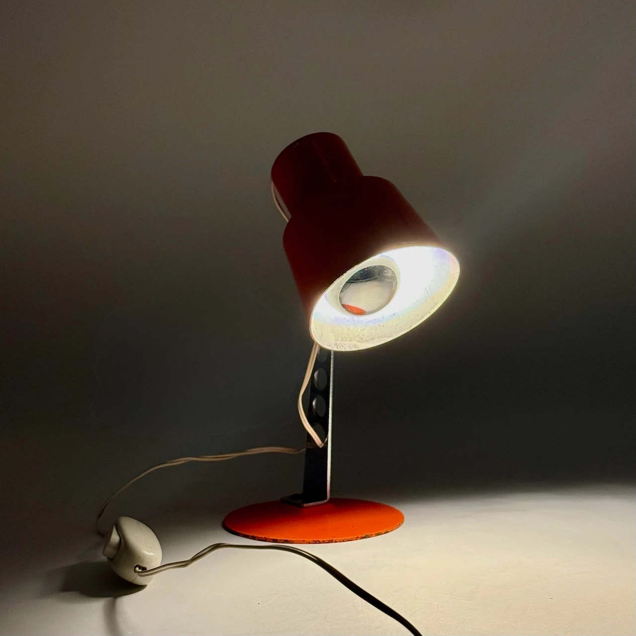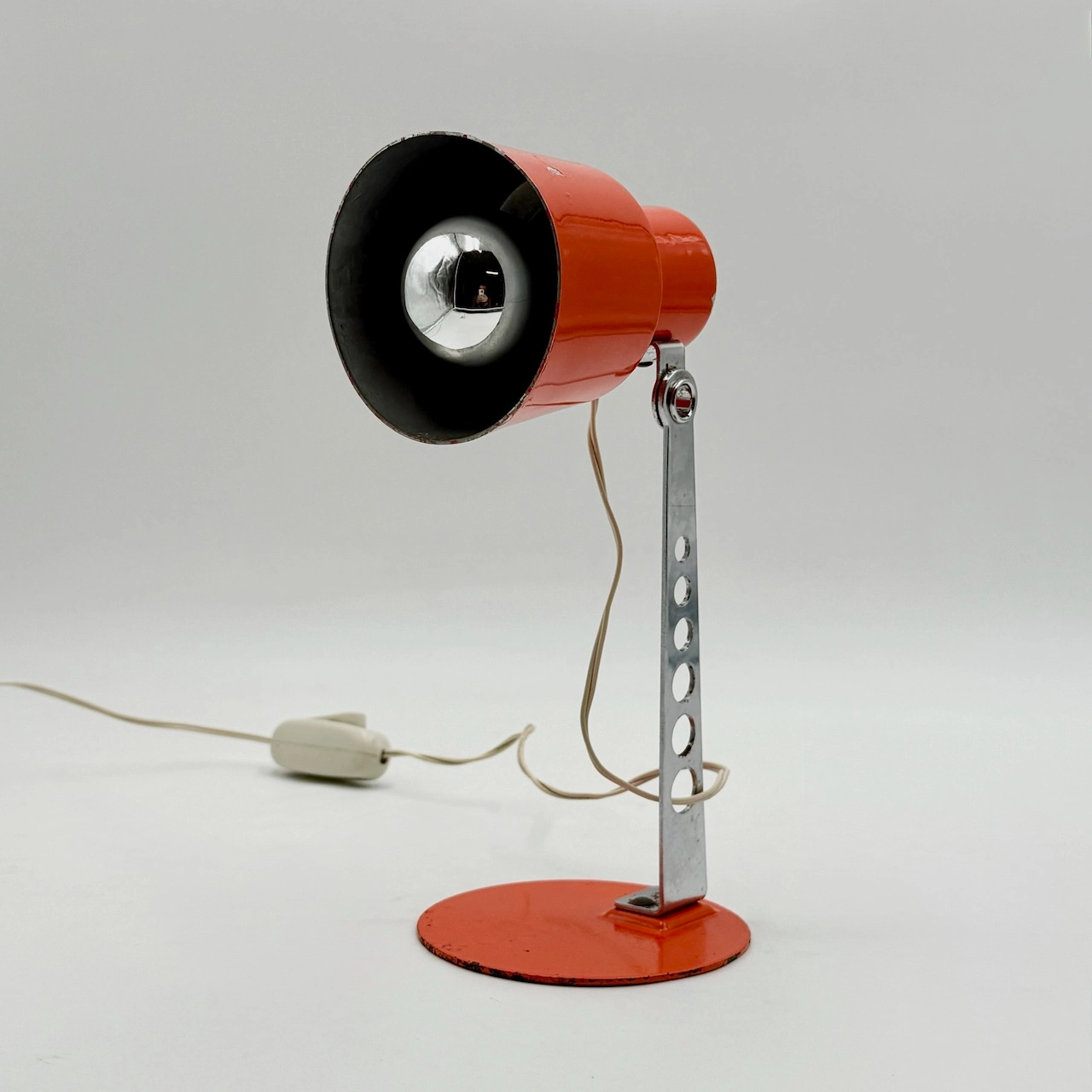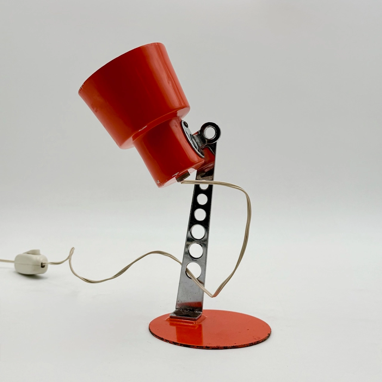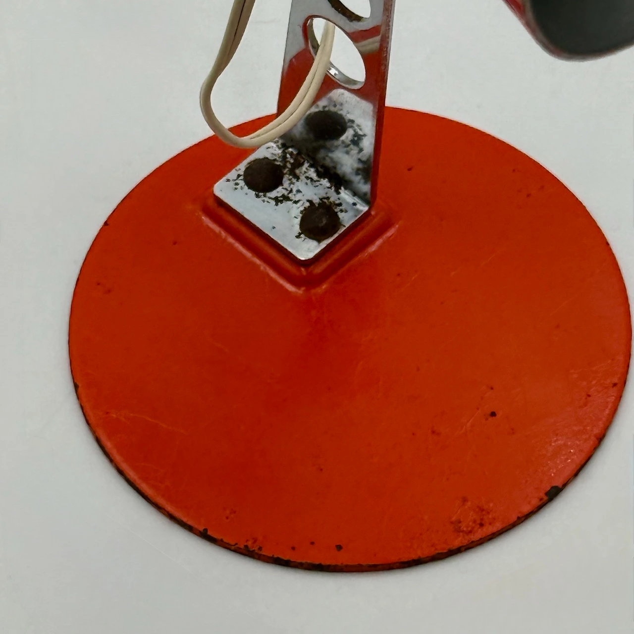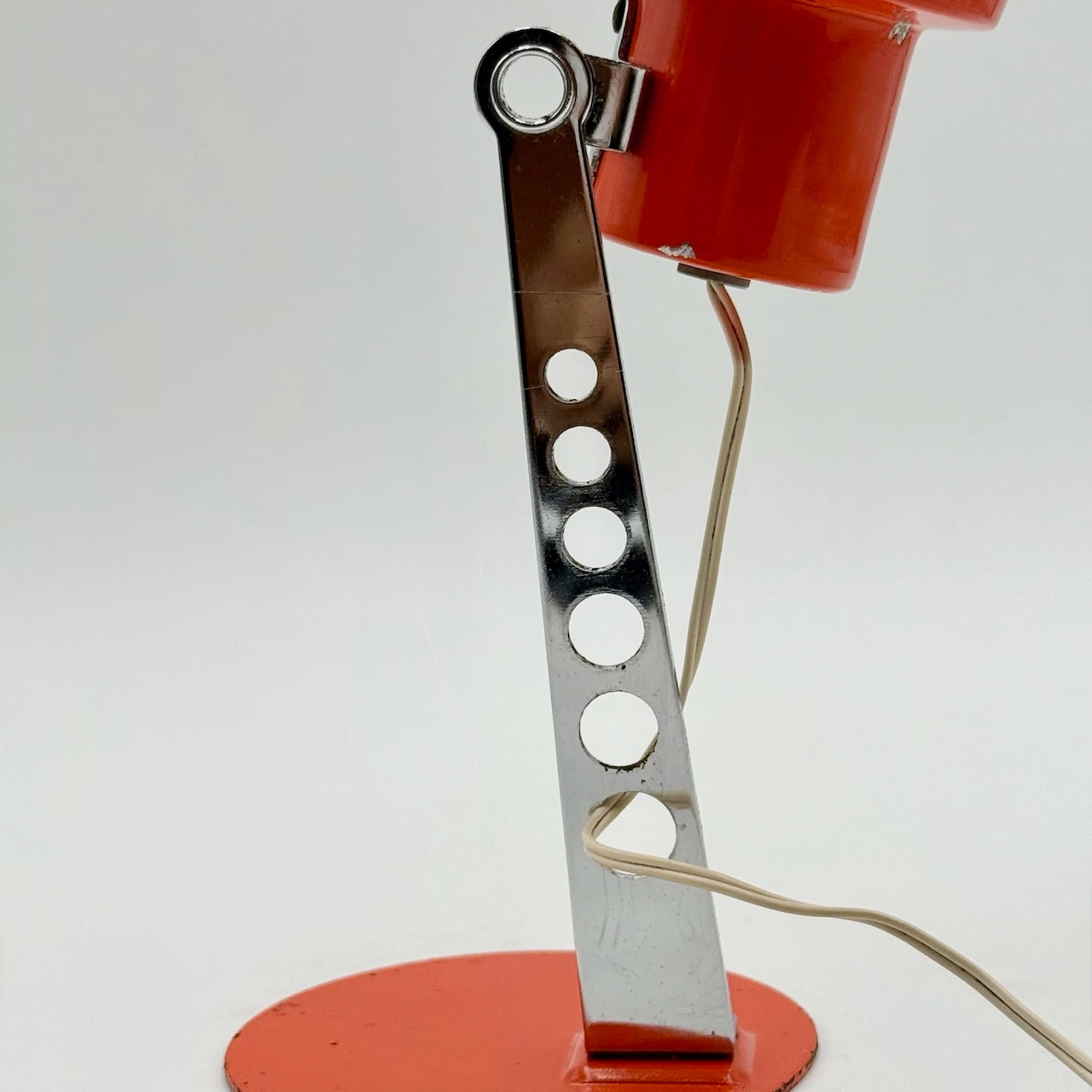 Authentic 1970s Targetti Sankey lamp in orange with chrome details. A beautiful desk or bedside light for collectors and design enthusiasts.