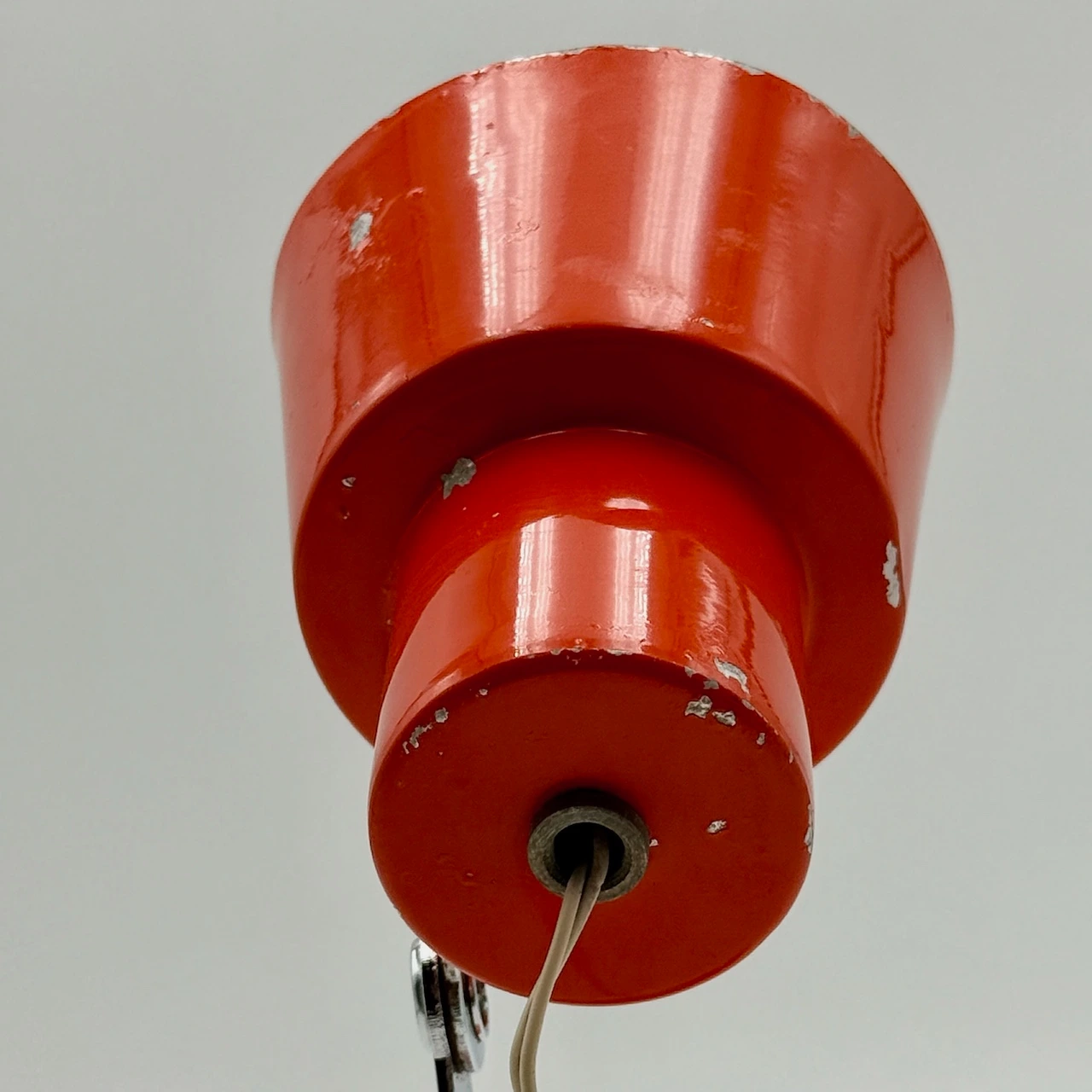 The Targetti Sankey Lamp is a true expression of Italian design from the 1970s. It combines vibrant color with a simple sculptural form. In addition, the bright orange lacquered metal shade and base are paired with a chrome perforated arm. As a result, the lamp looks bold yet balanced. Its clean geometry reflects the playful but functional spirit of the Space Age.