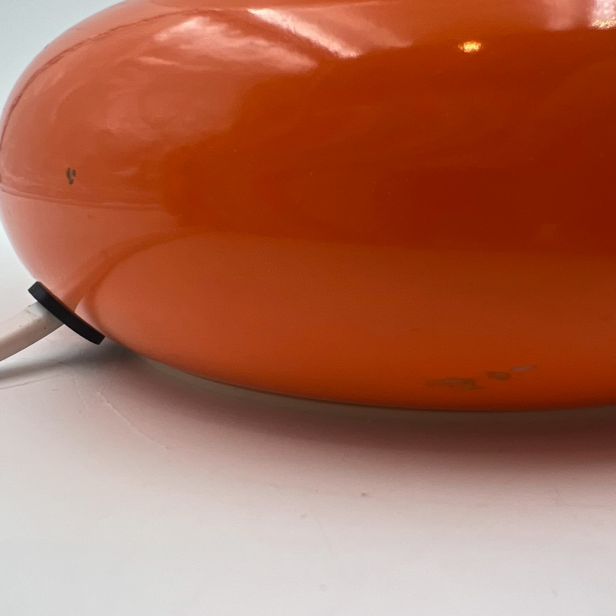 item. table lampsmaker. targetti sankeyperiod. 1960s/70scountry. Italymaterial. metal, glasscolor. orange, whitedimensions (cm). 15 x 15 x 17 H.condition. excellent vintage conditions. minimal traces of time.art. no. 1422
