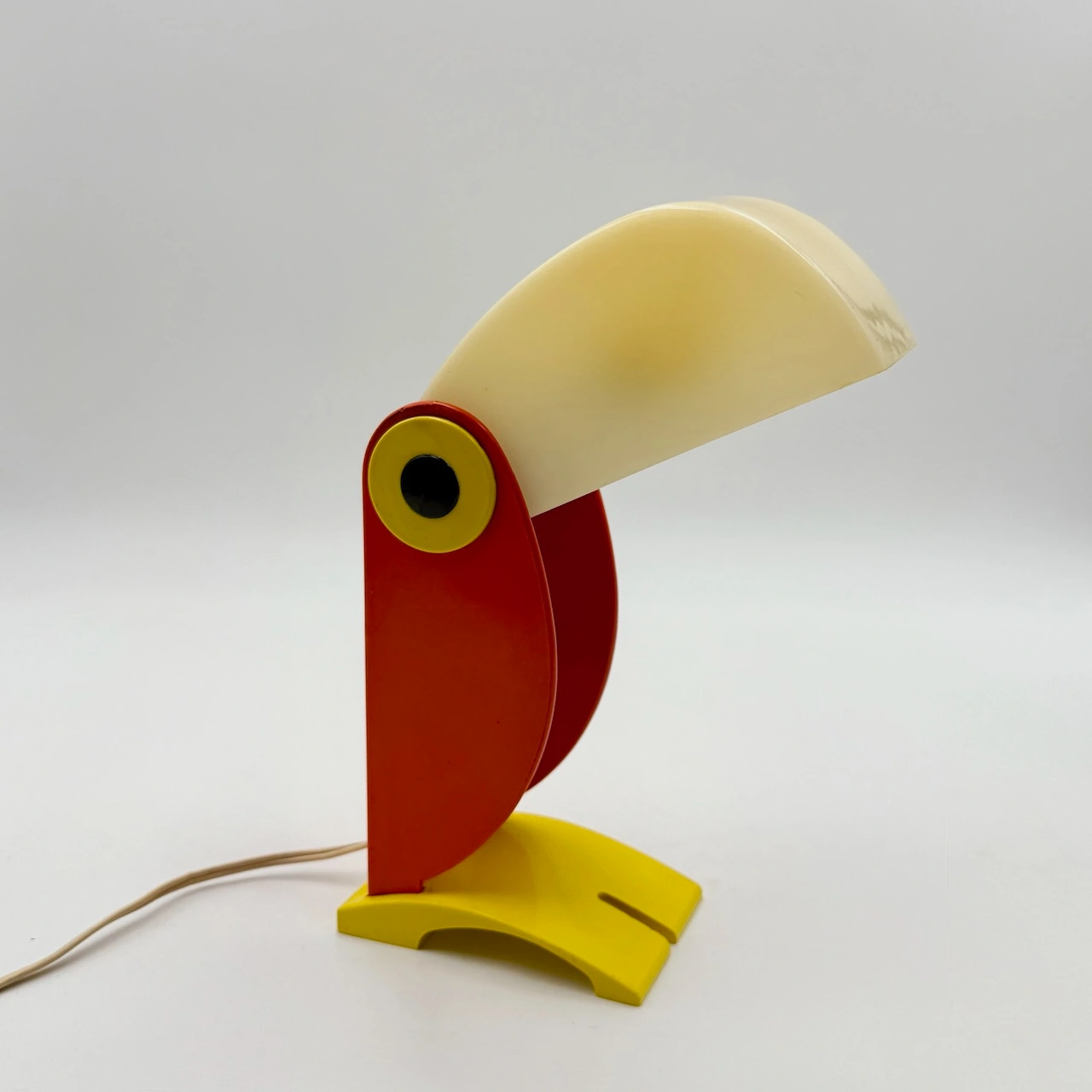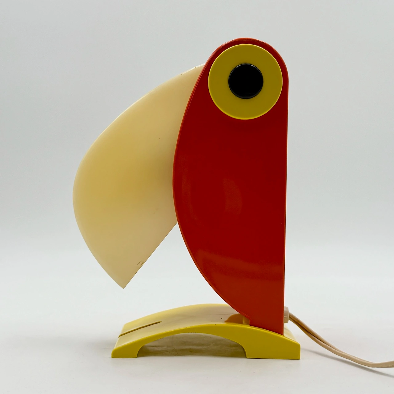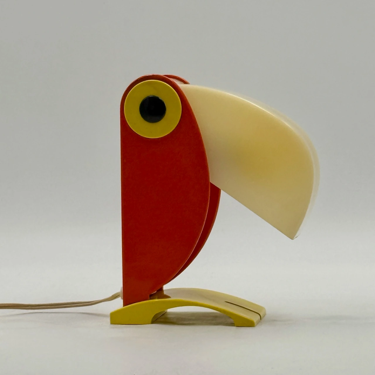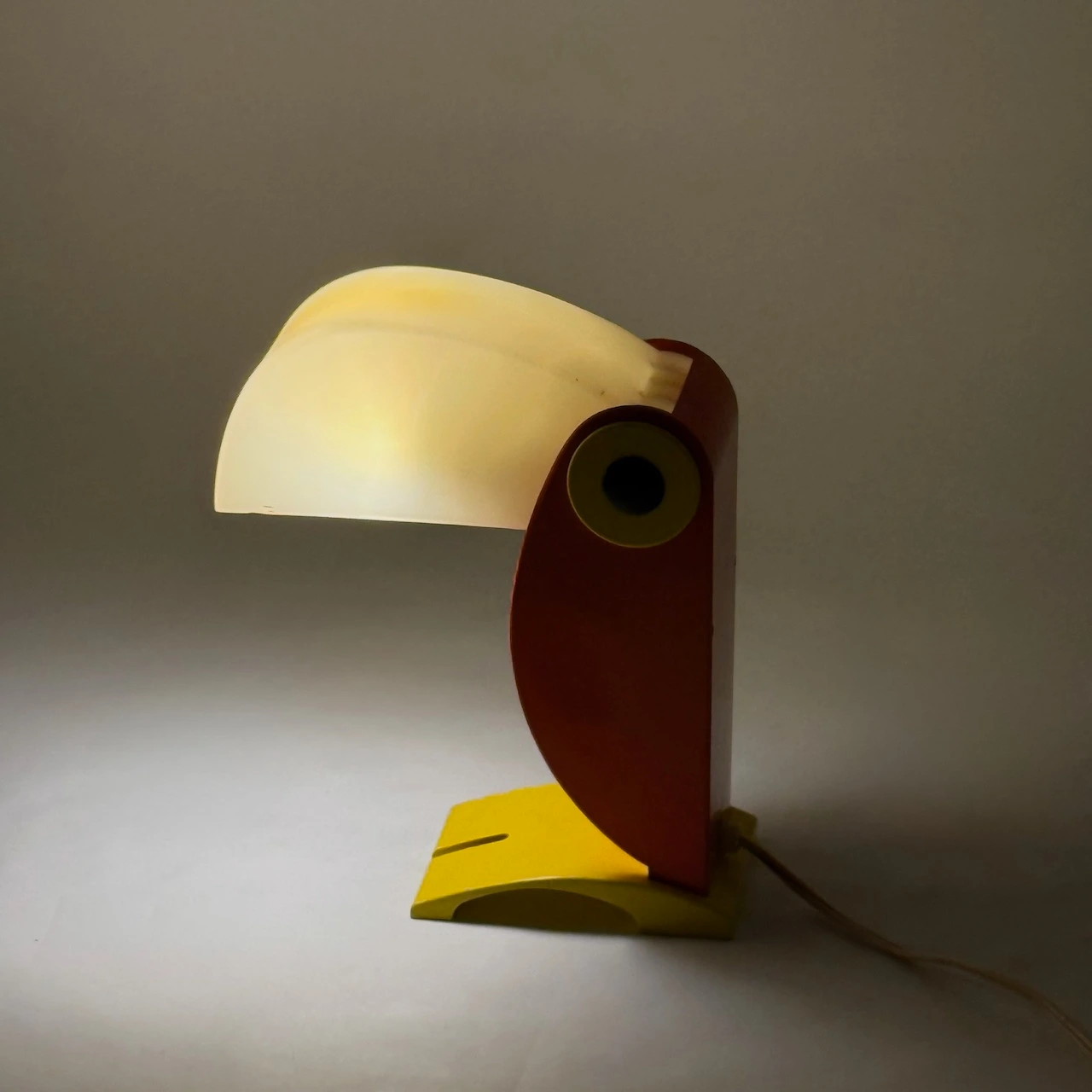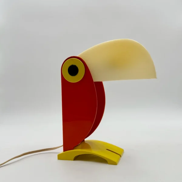 Rare 70s Toucan Lamp by Enea Ferrari for Old Timer Ferrari. A playful yet iconic design piece with a vibrant yellow and red color palette. A true collector’s gem.