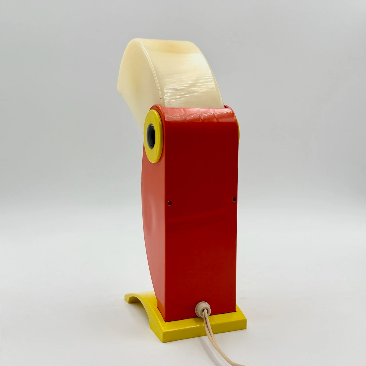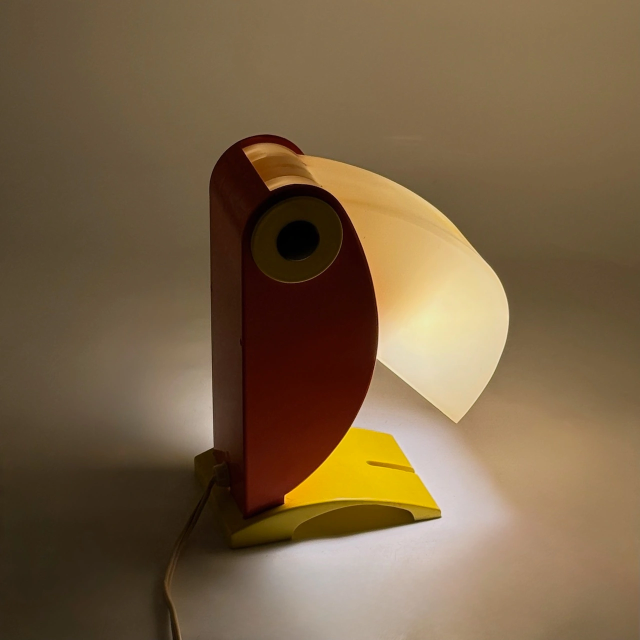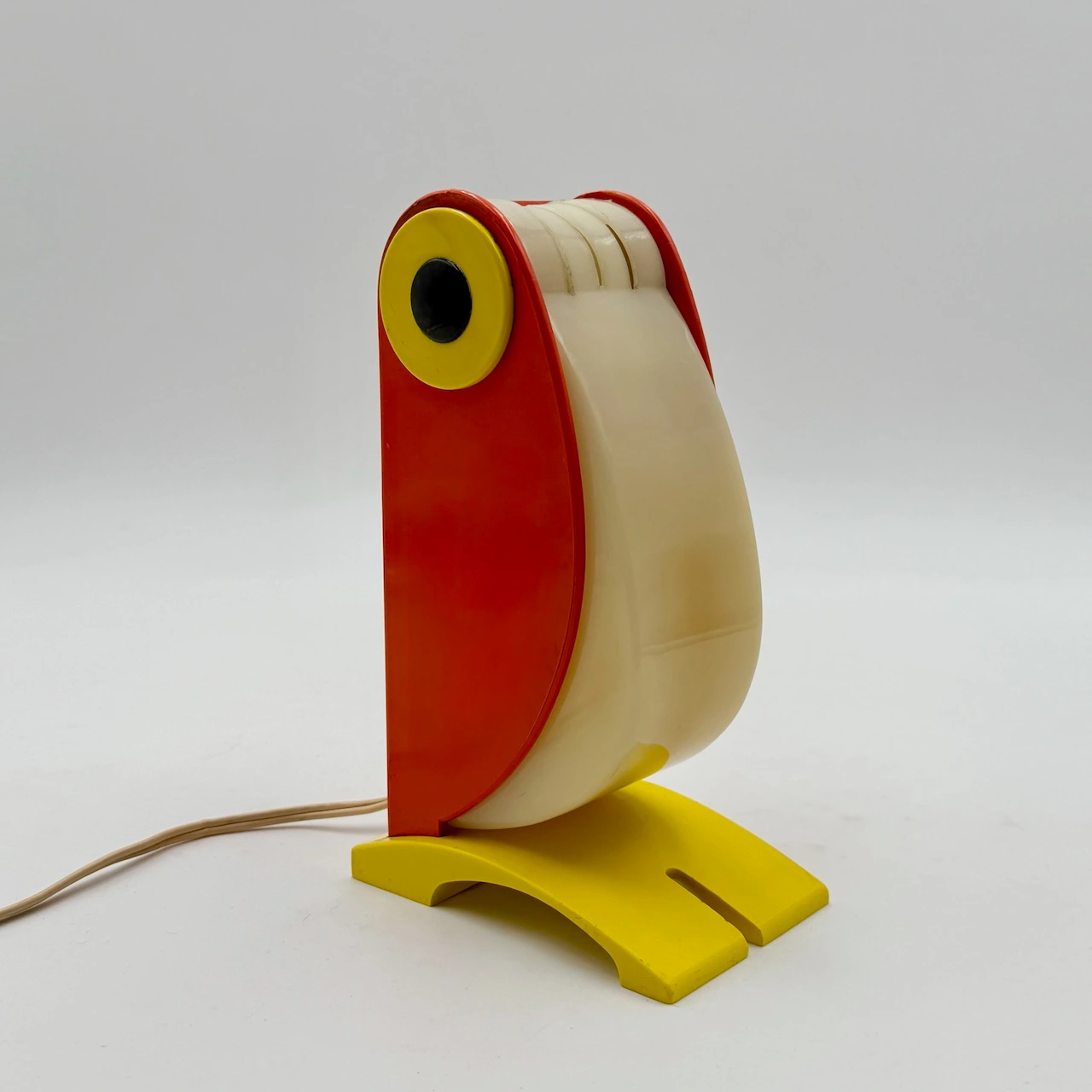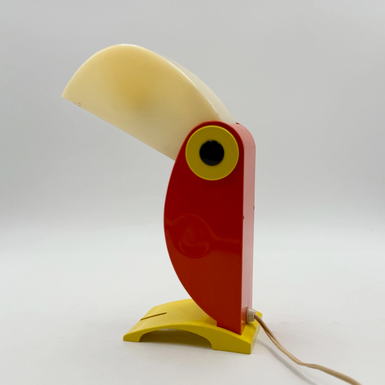 Rare 70s Toucan Lamp by Enea Ferrari for Old Timer Ferrari. A playful yet iconic design piece with a vibrant yellow and red color palette. A true collector’s gem.