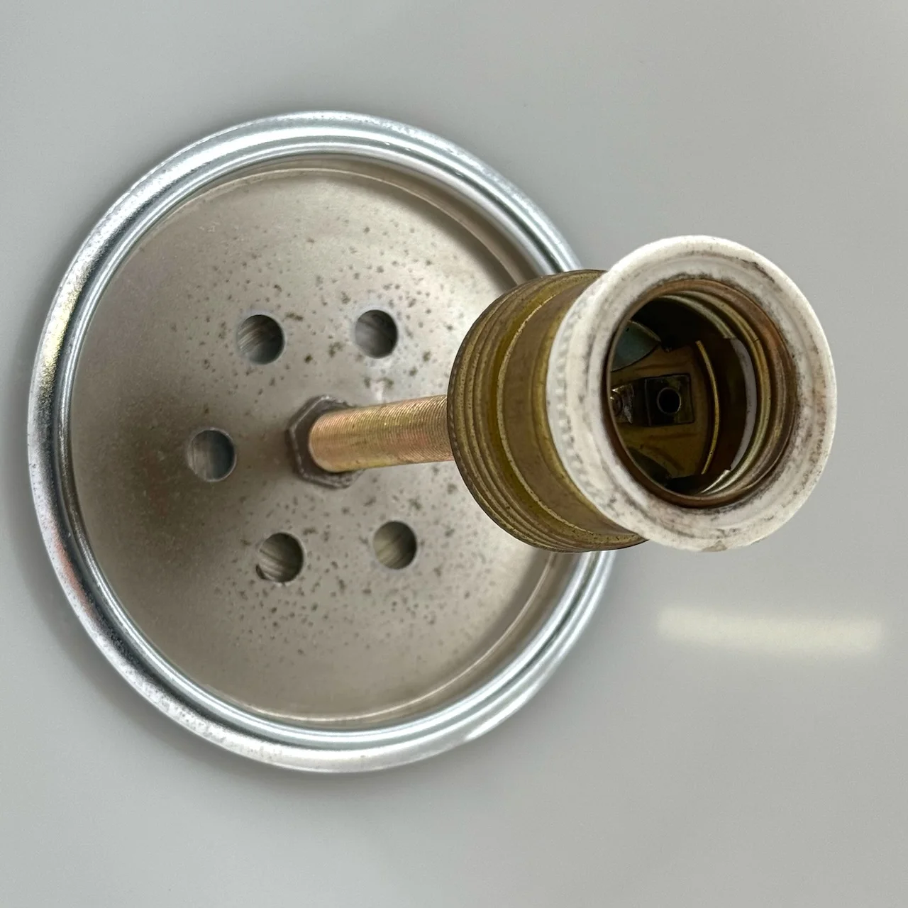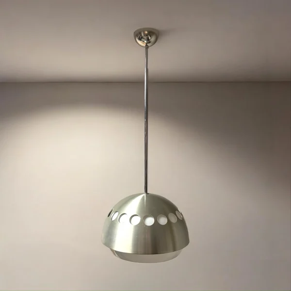 This amazing hanging light embodies the era’s fascination with the cosmos, blending sleek industrial materials with an imaginative aesthetic inspired by science fiction and space exploration.