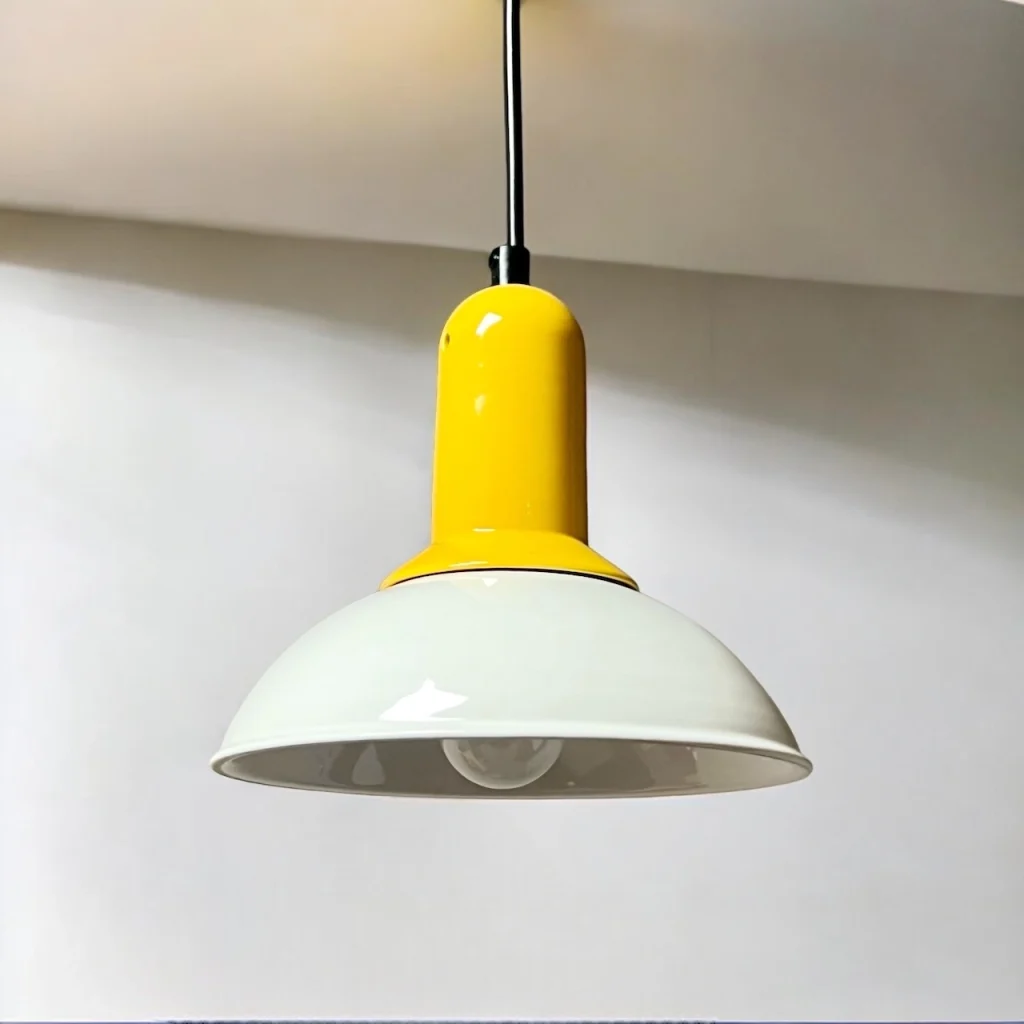 80s vintage lamp in sunny yellow by Imago – a lively ceramic masterpiece blending nostalgic flair with timeless elegance, showcasing impeccable craftsmanship.